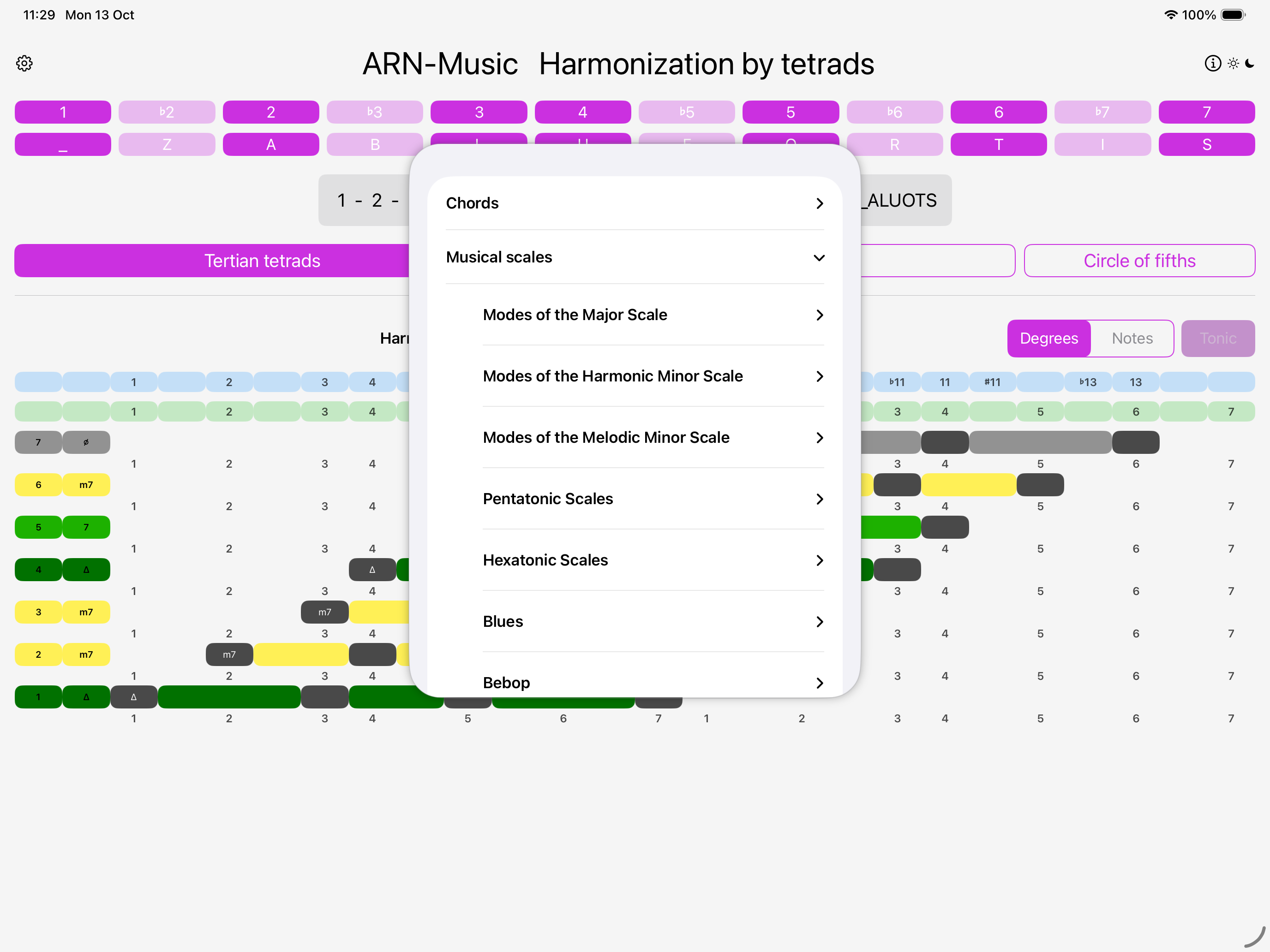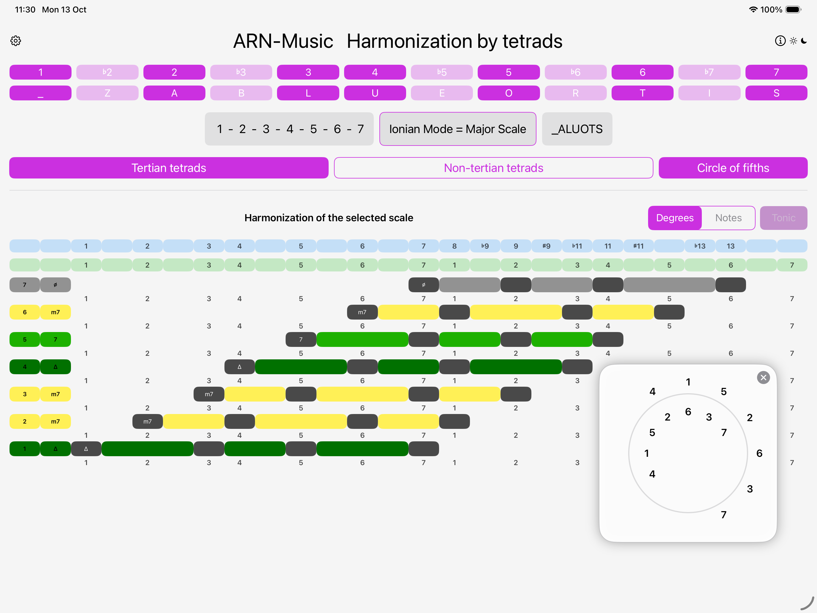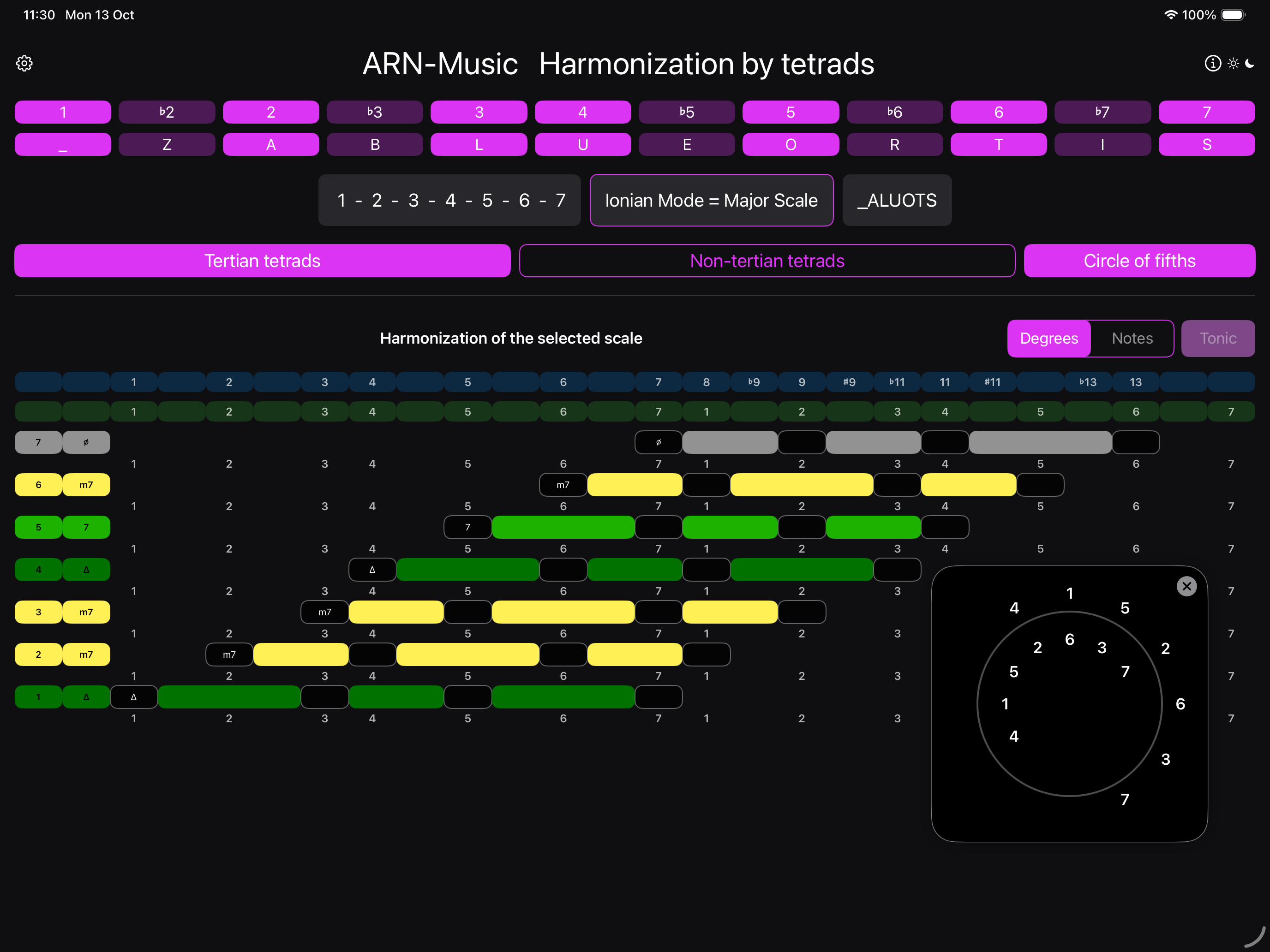 Thanks to the dedicated Circle of fifths for each scale, you can easily create harmonious chord progressions.
