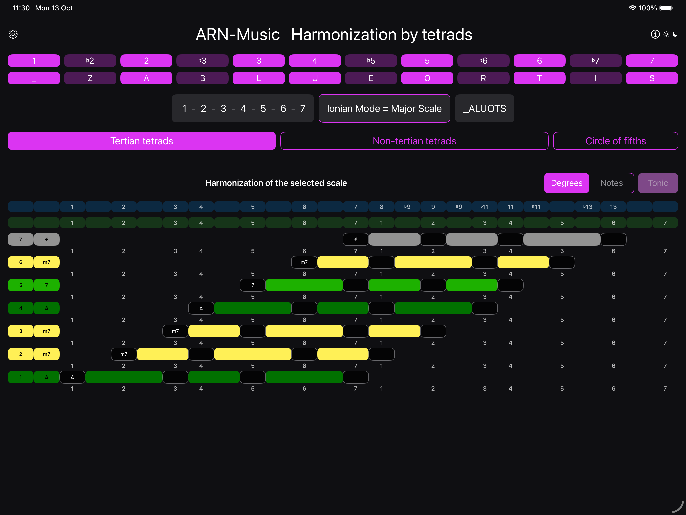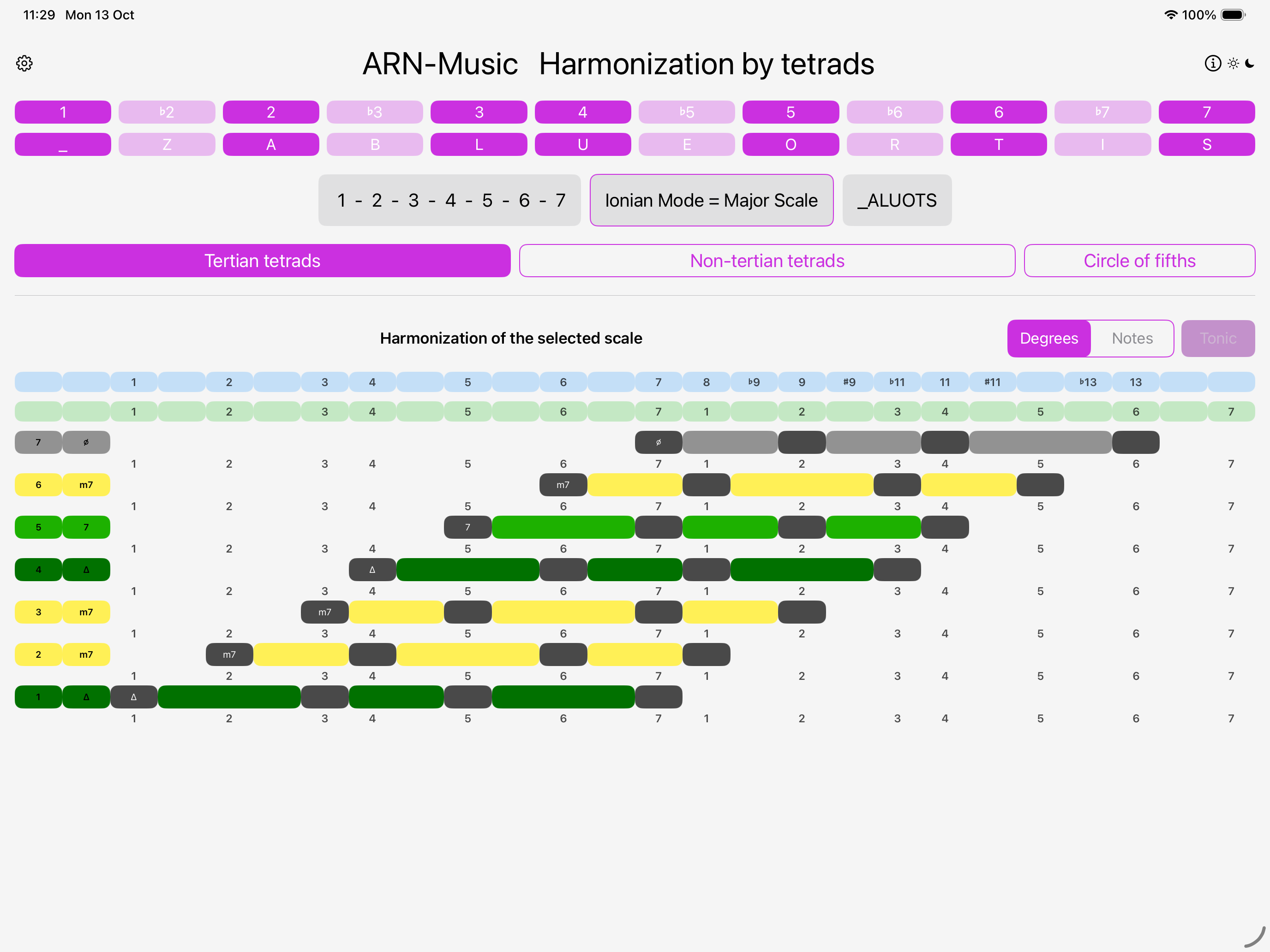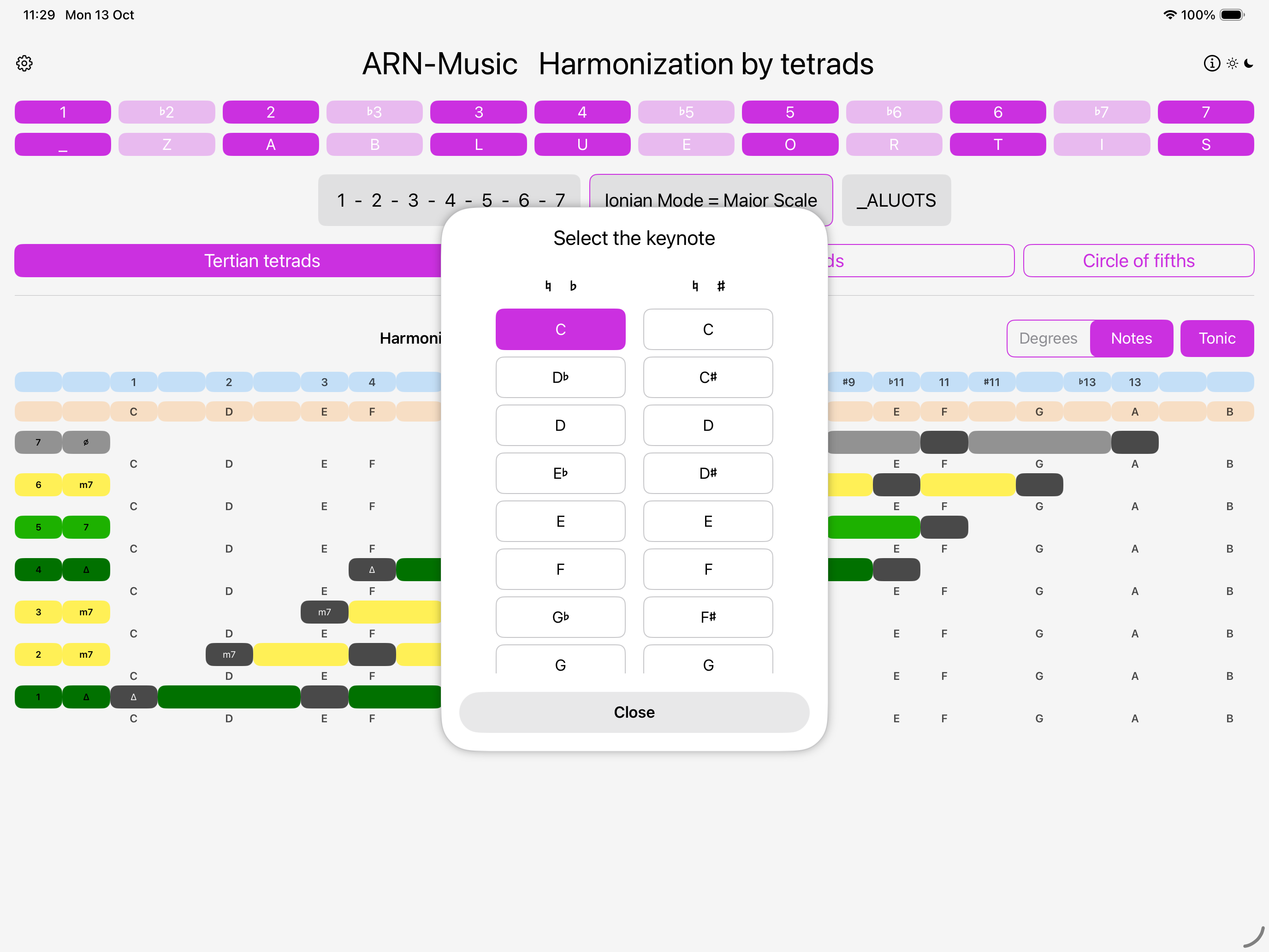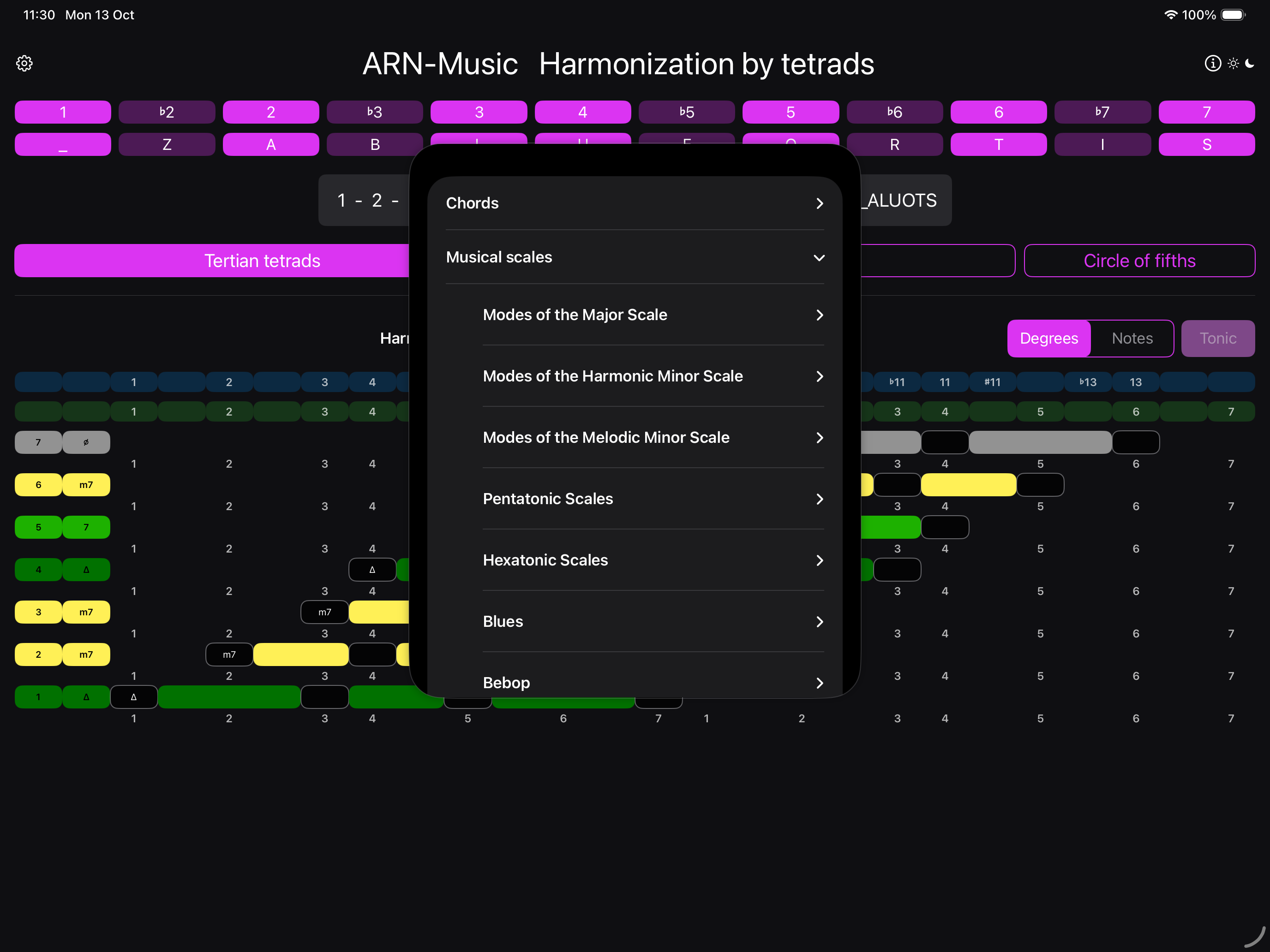 Thanks to the dedicated Circle of fifths for each scale, you can easily create harmonious chord progressions.