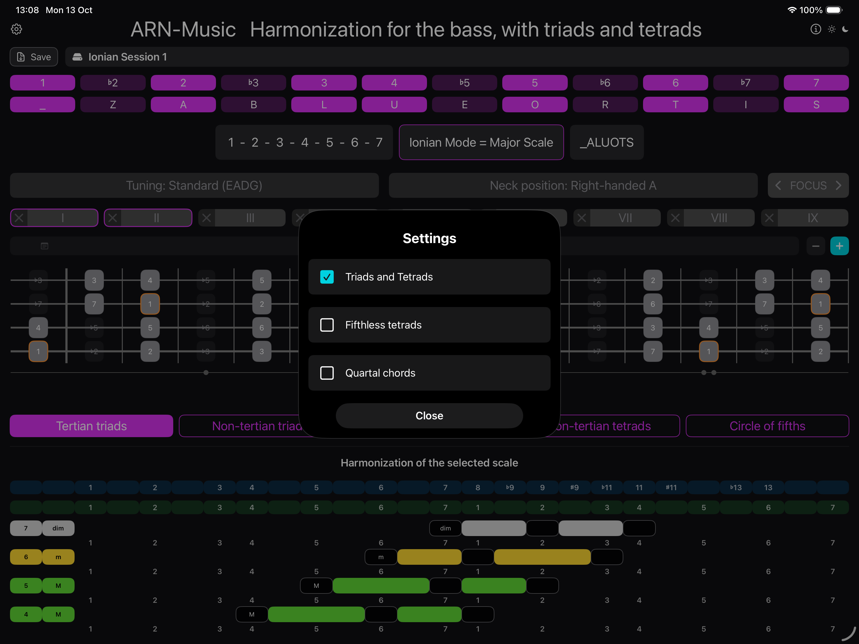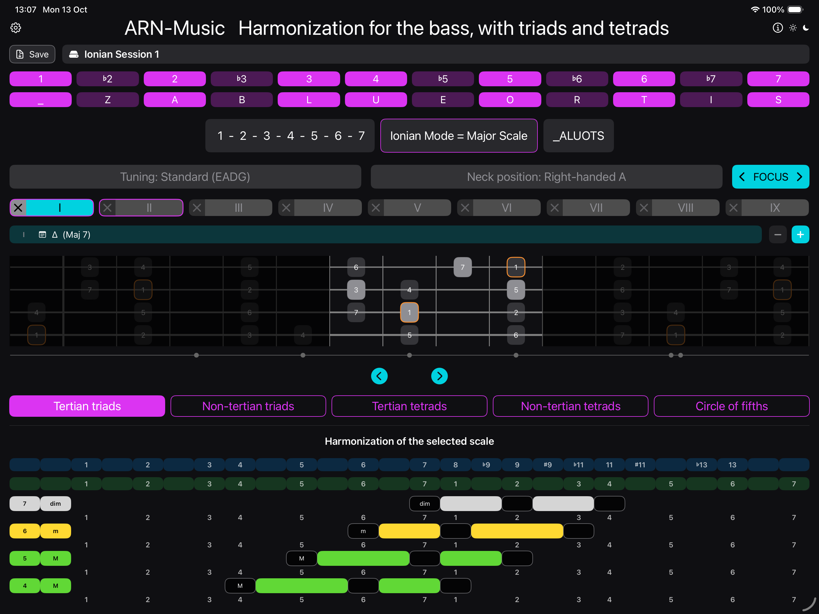 The interactive app innovatively displays the triads and tetrads for any musical scale. Perfect for studying and applying chords and harmonizations.
