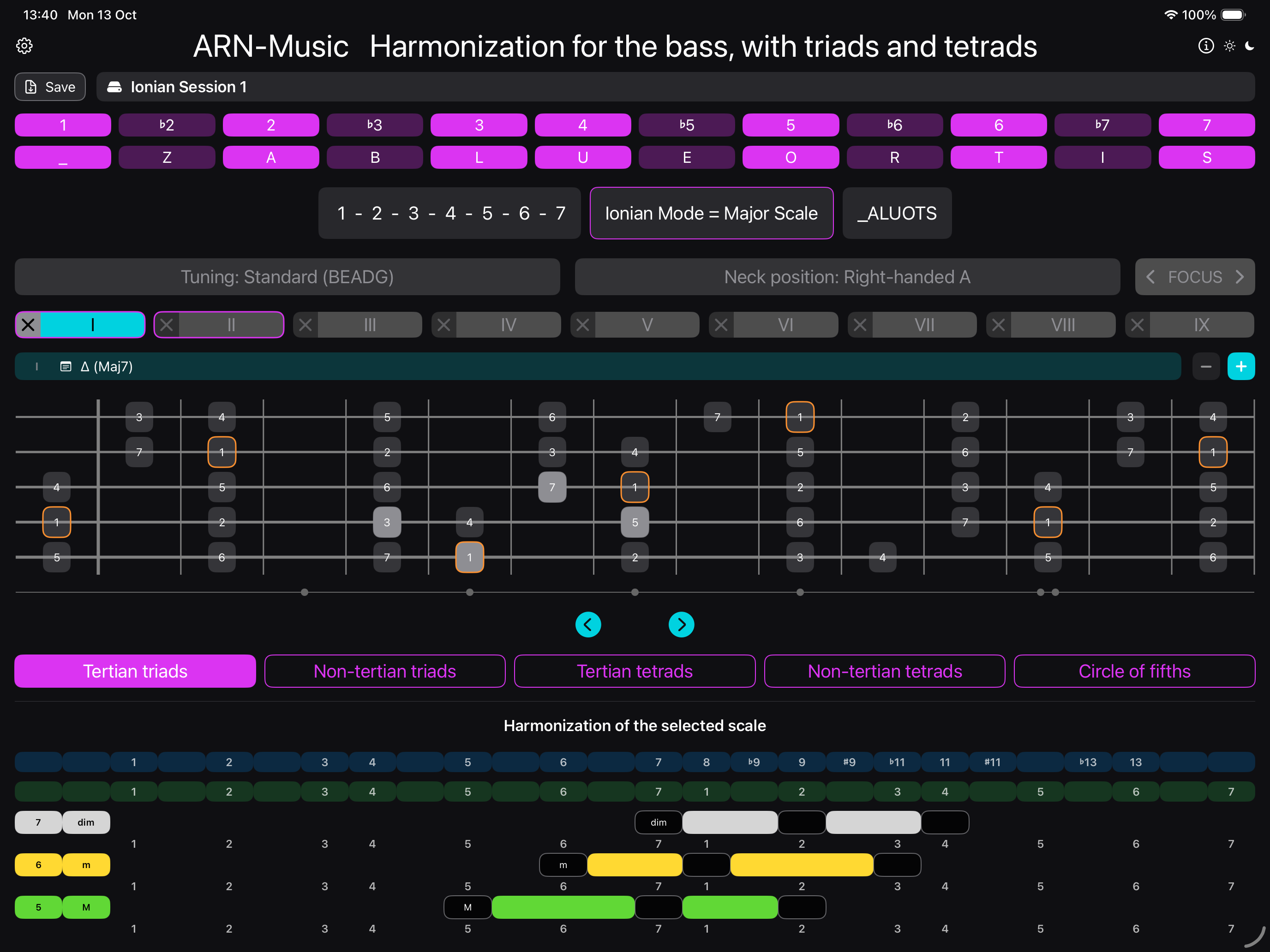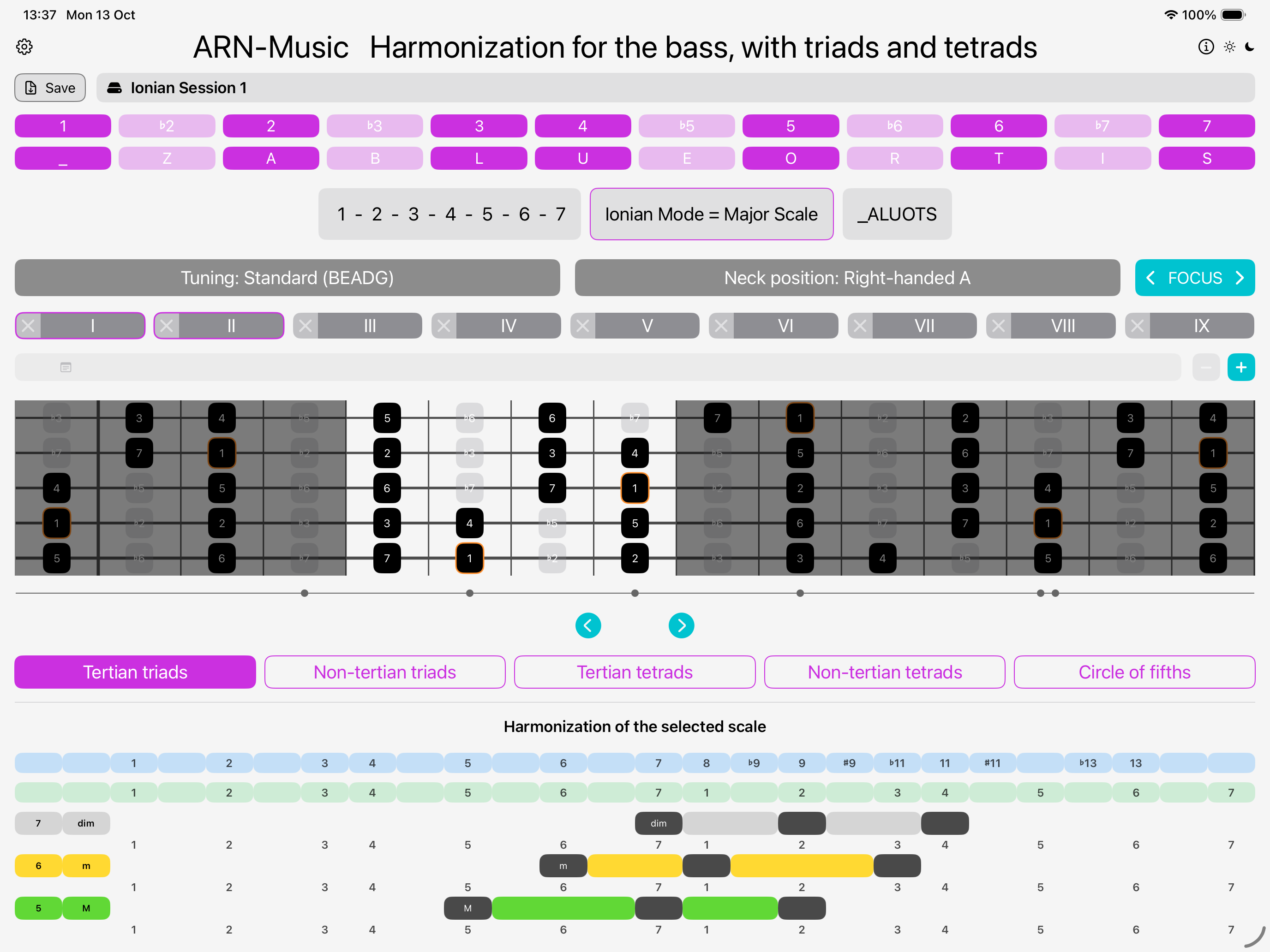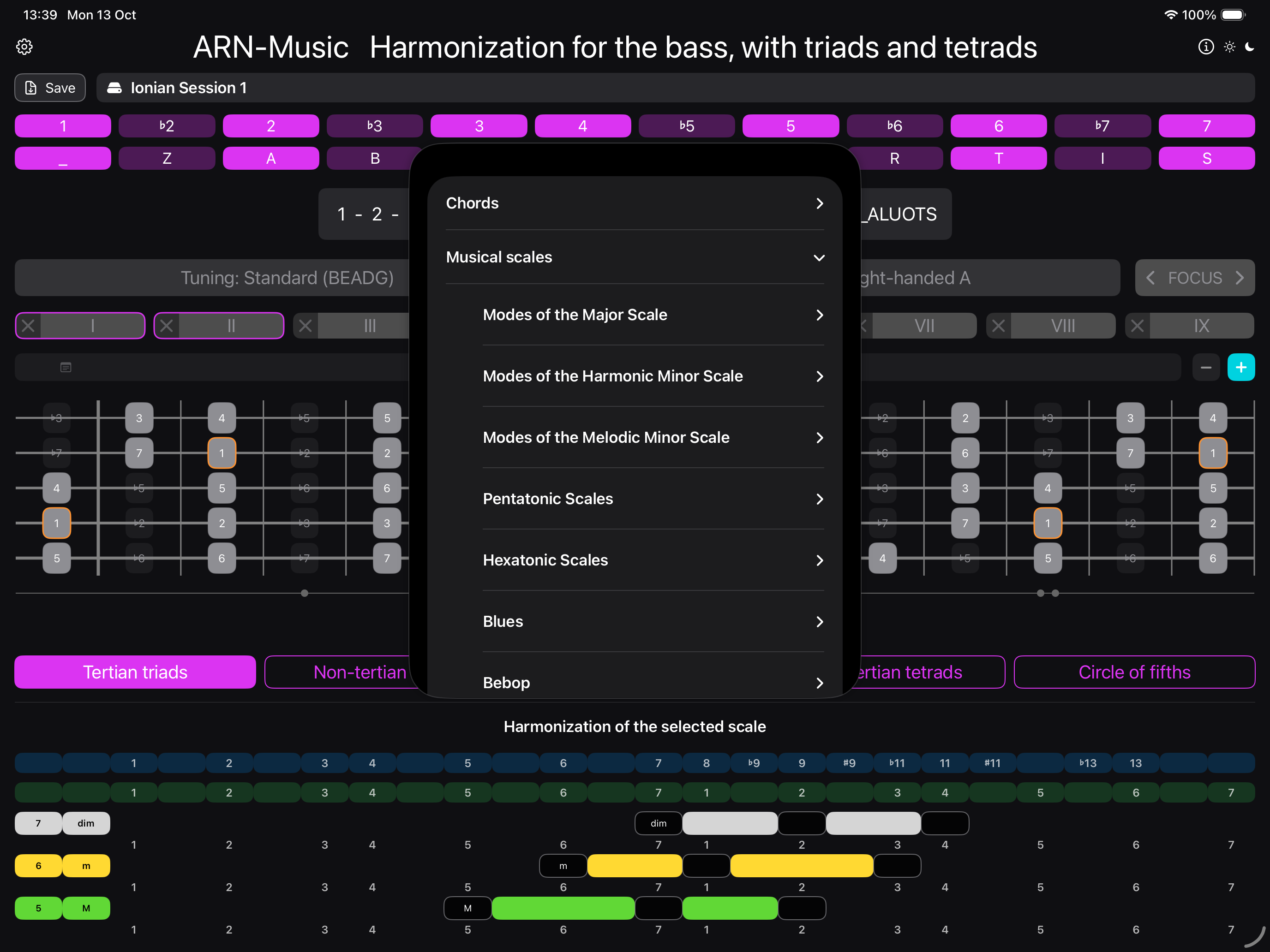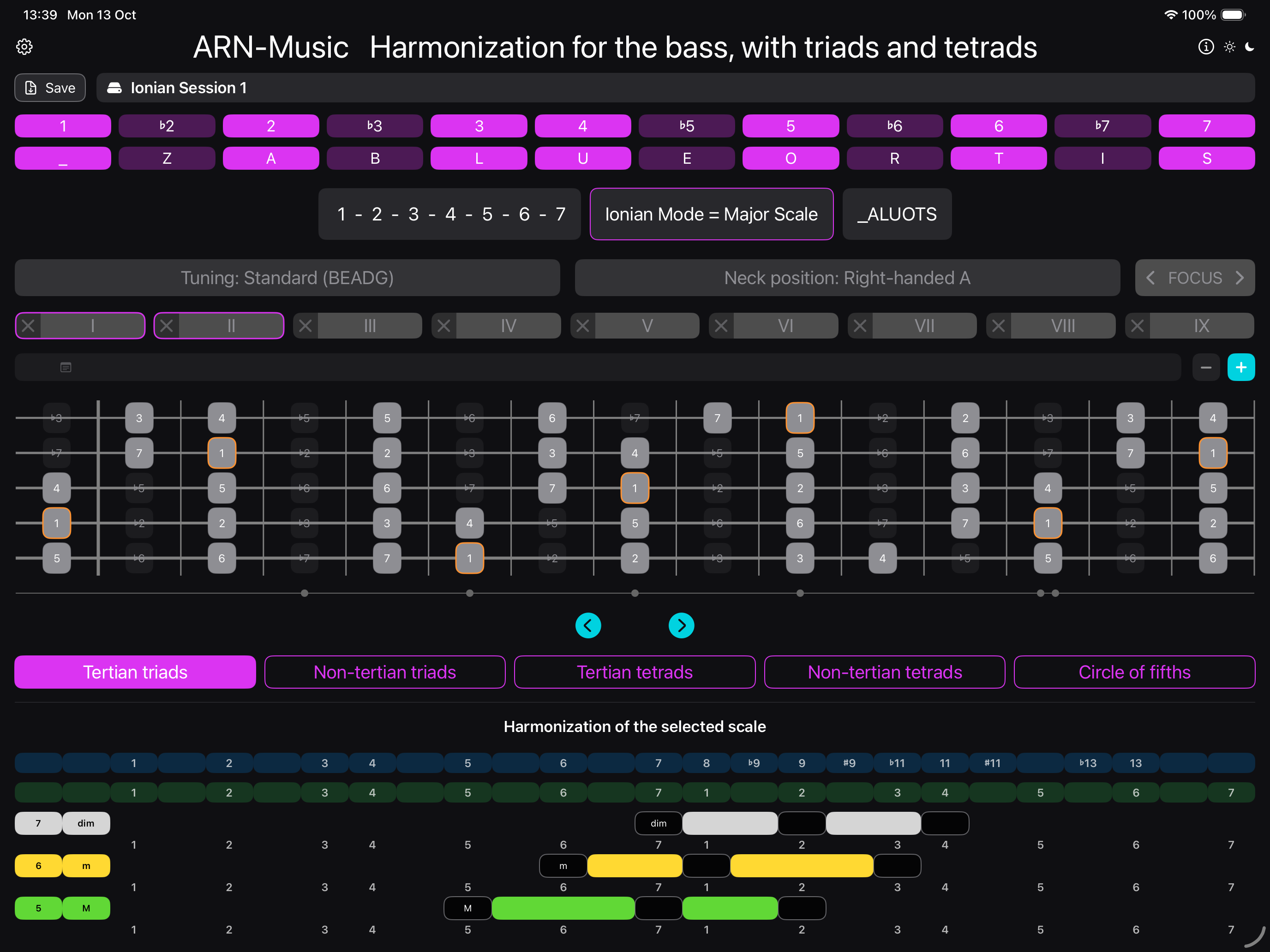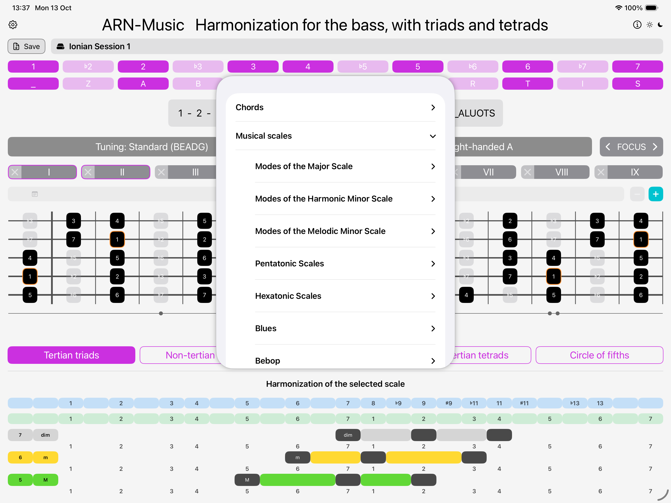 The interactive app innovatively displays the triads and tetrads for any musical scale. Perfect for studying and applying chords and harmonizations.