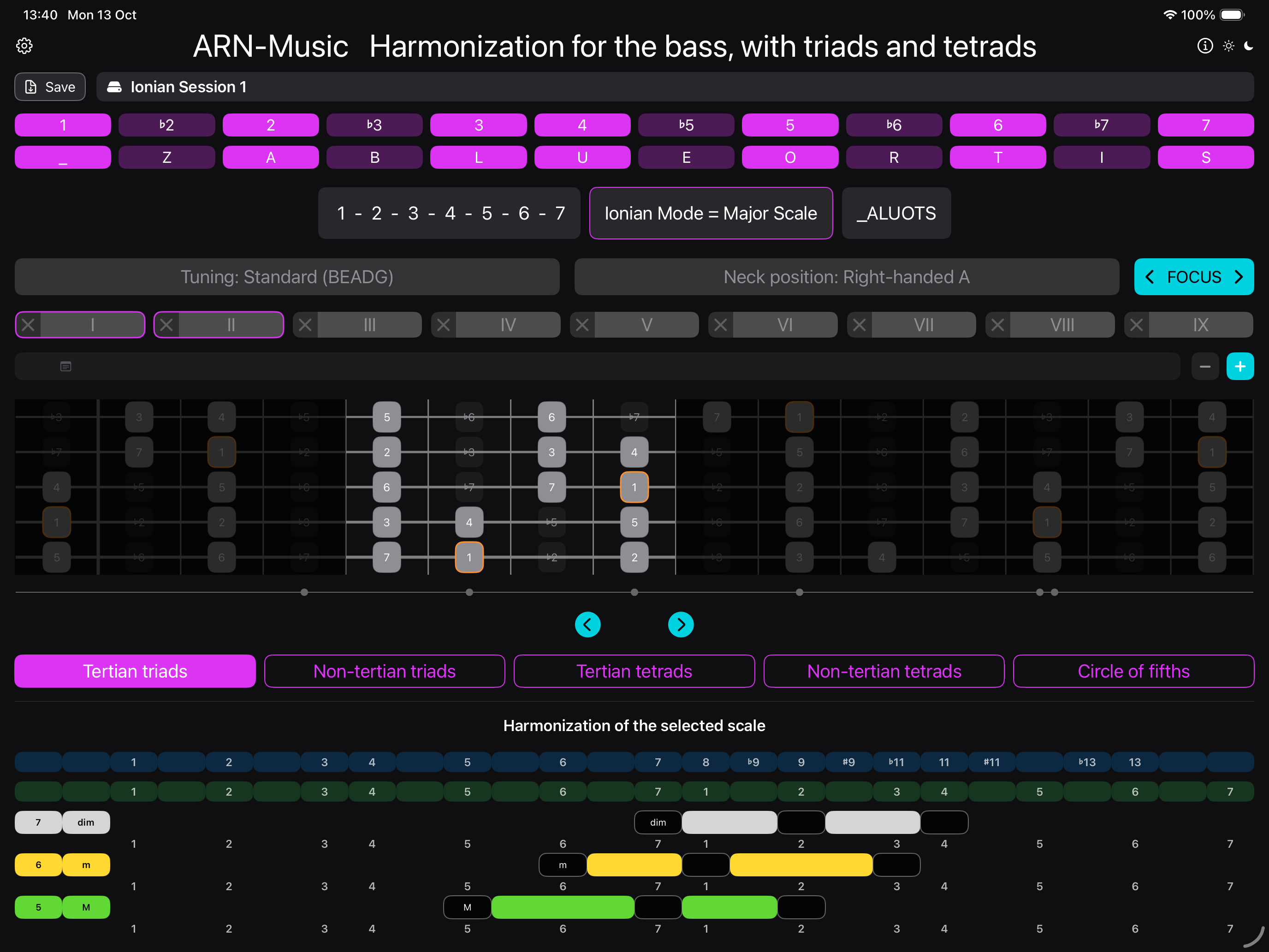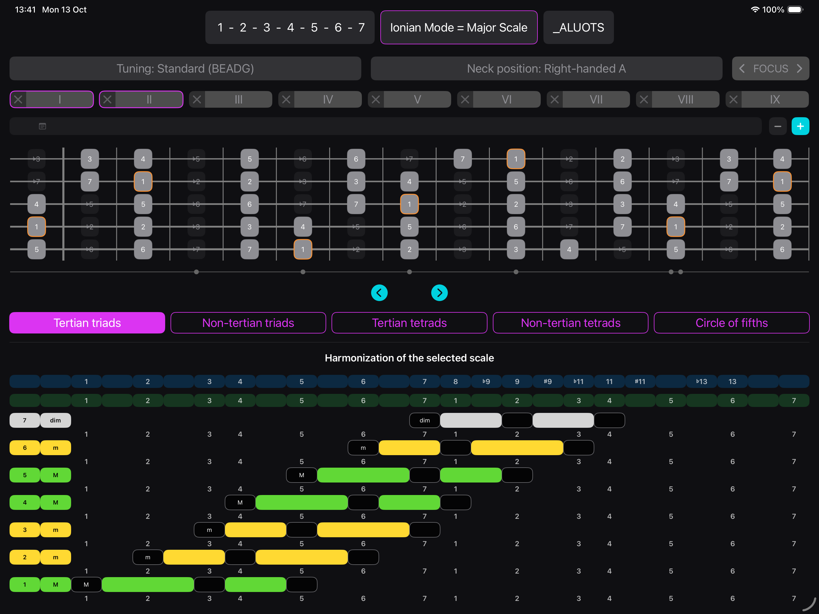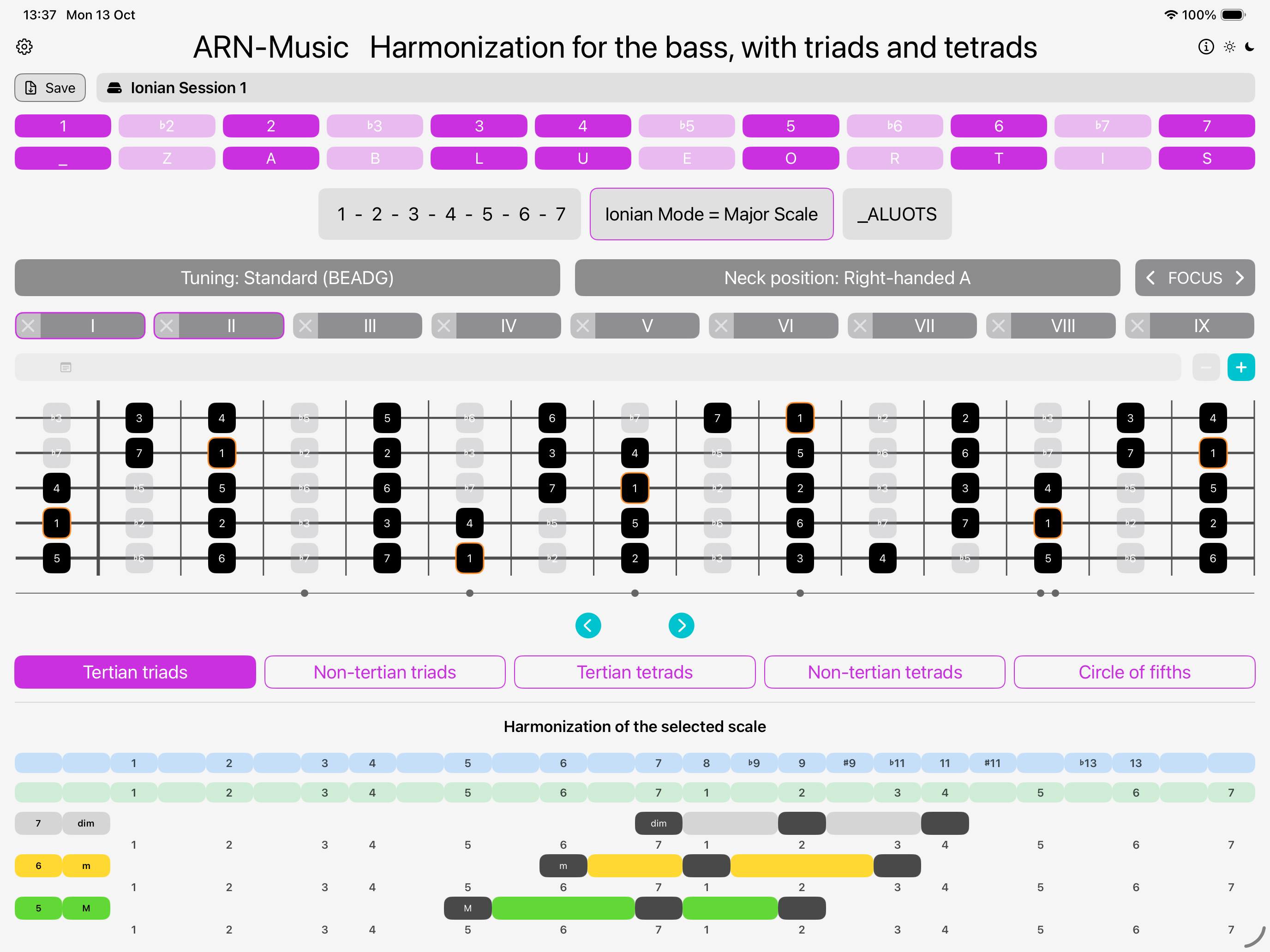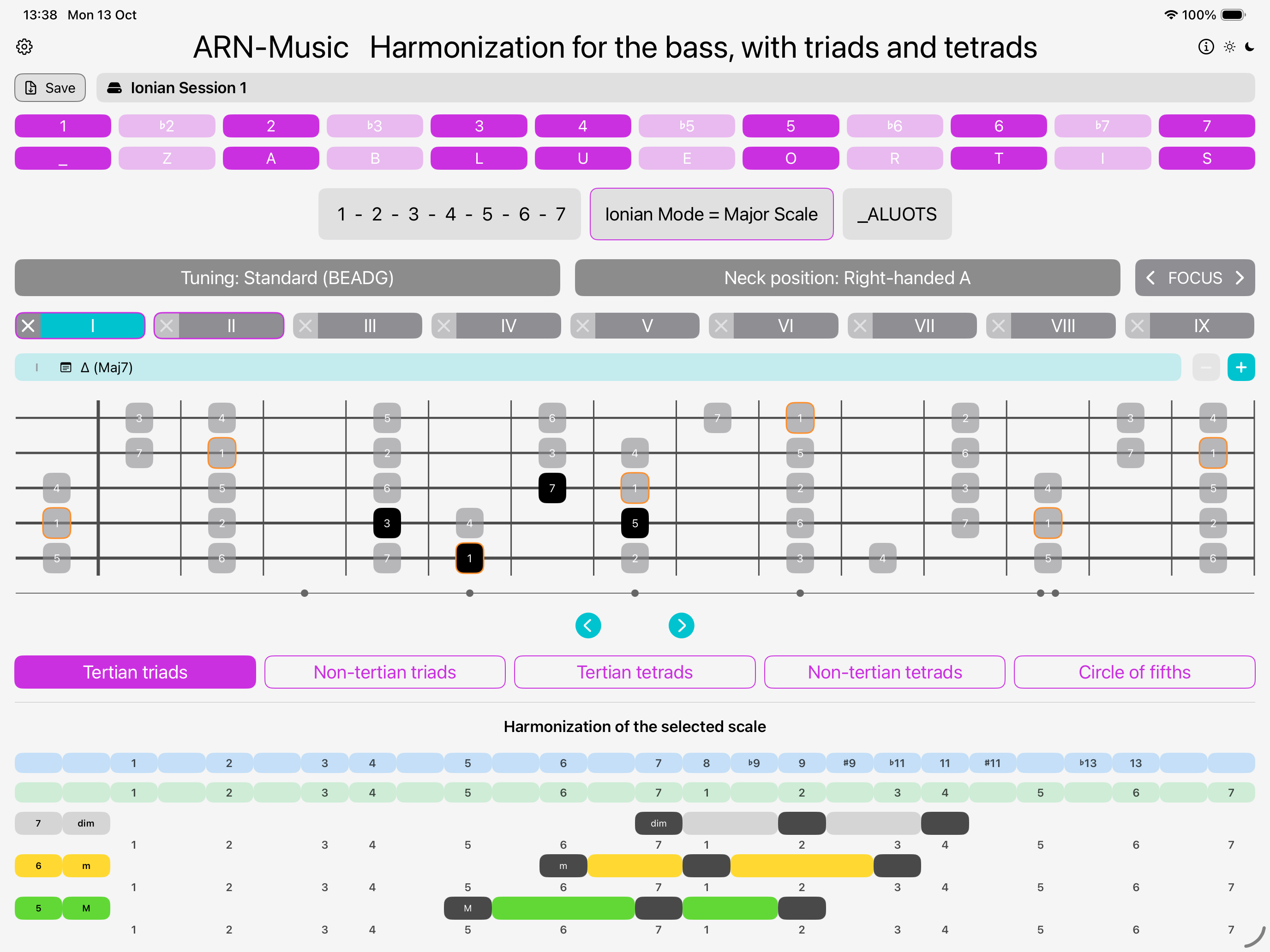 The interactive app innovatively displays the triads and tetrads for any musical scale. Perfect for studying and applying chords and harmonizations.