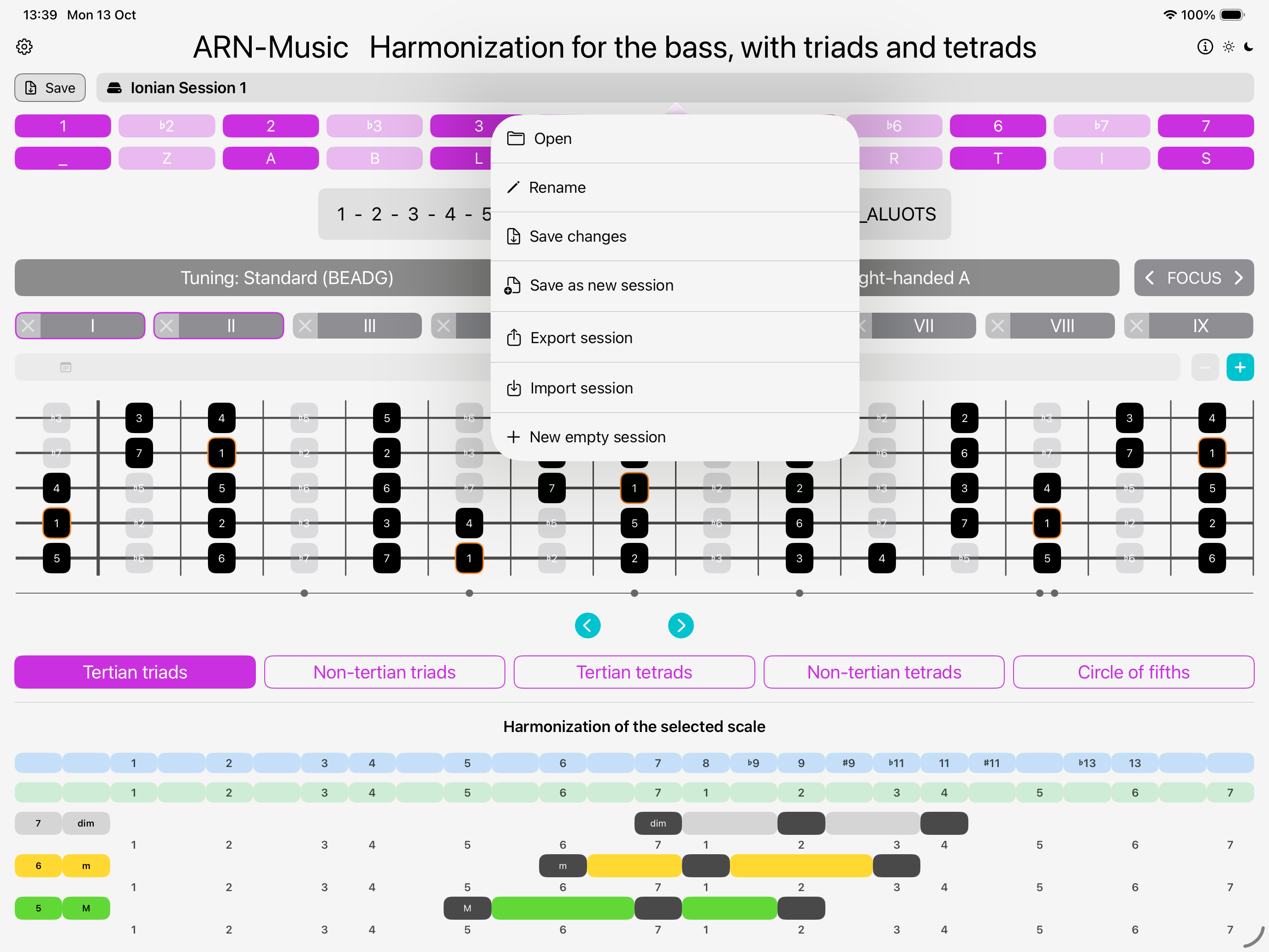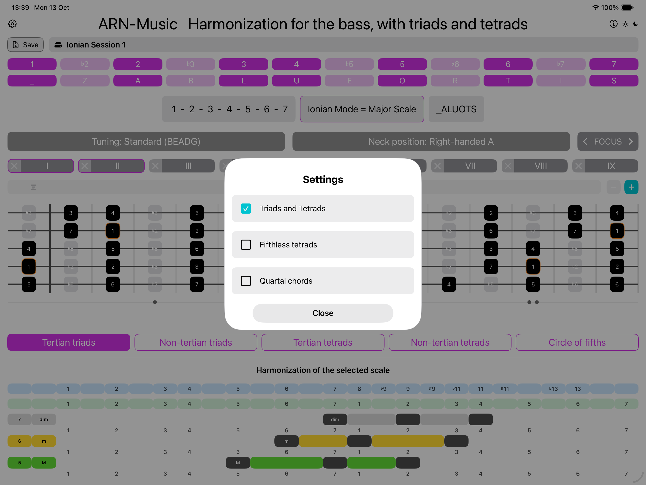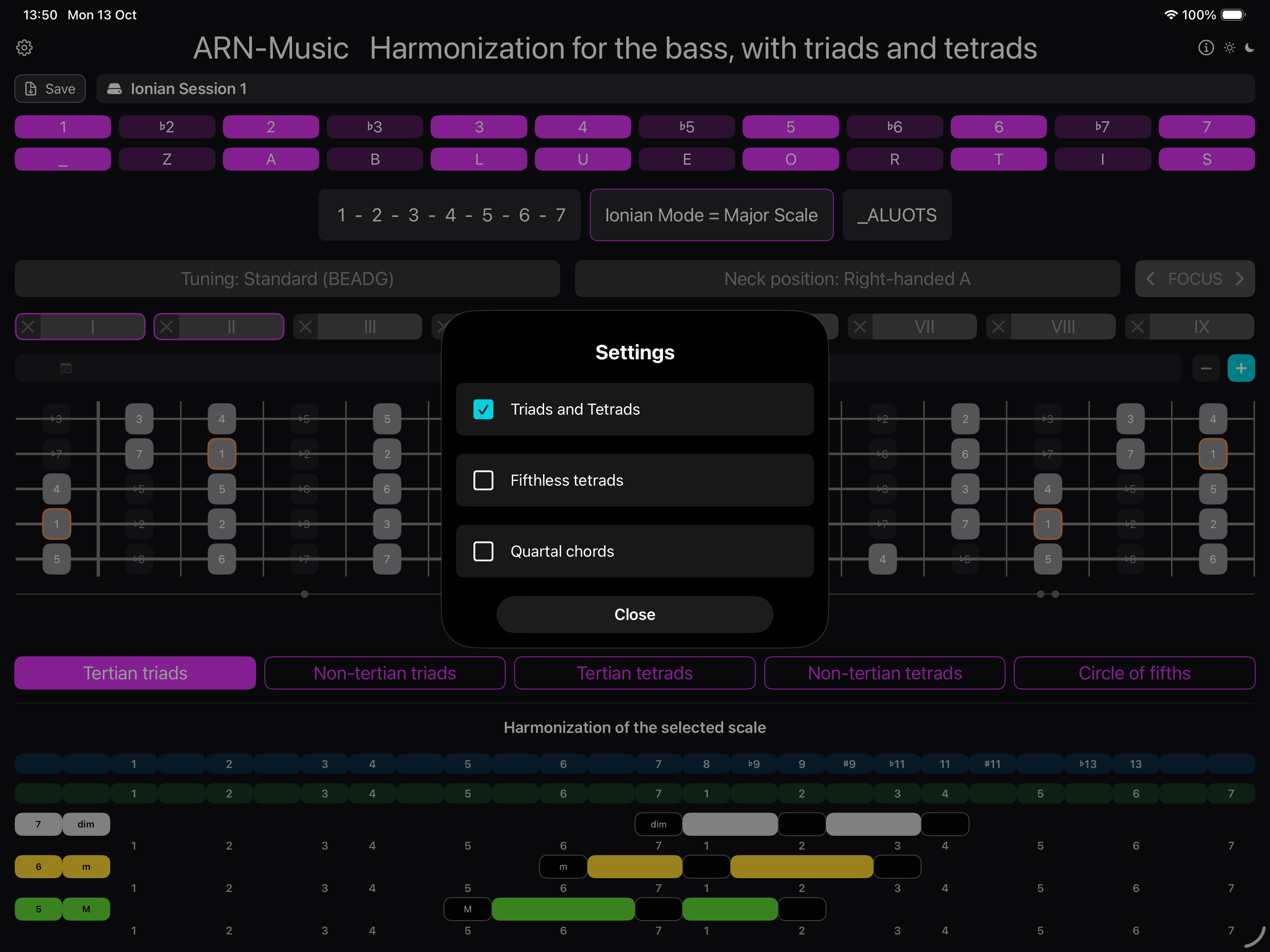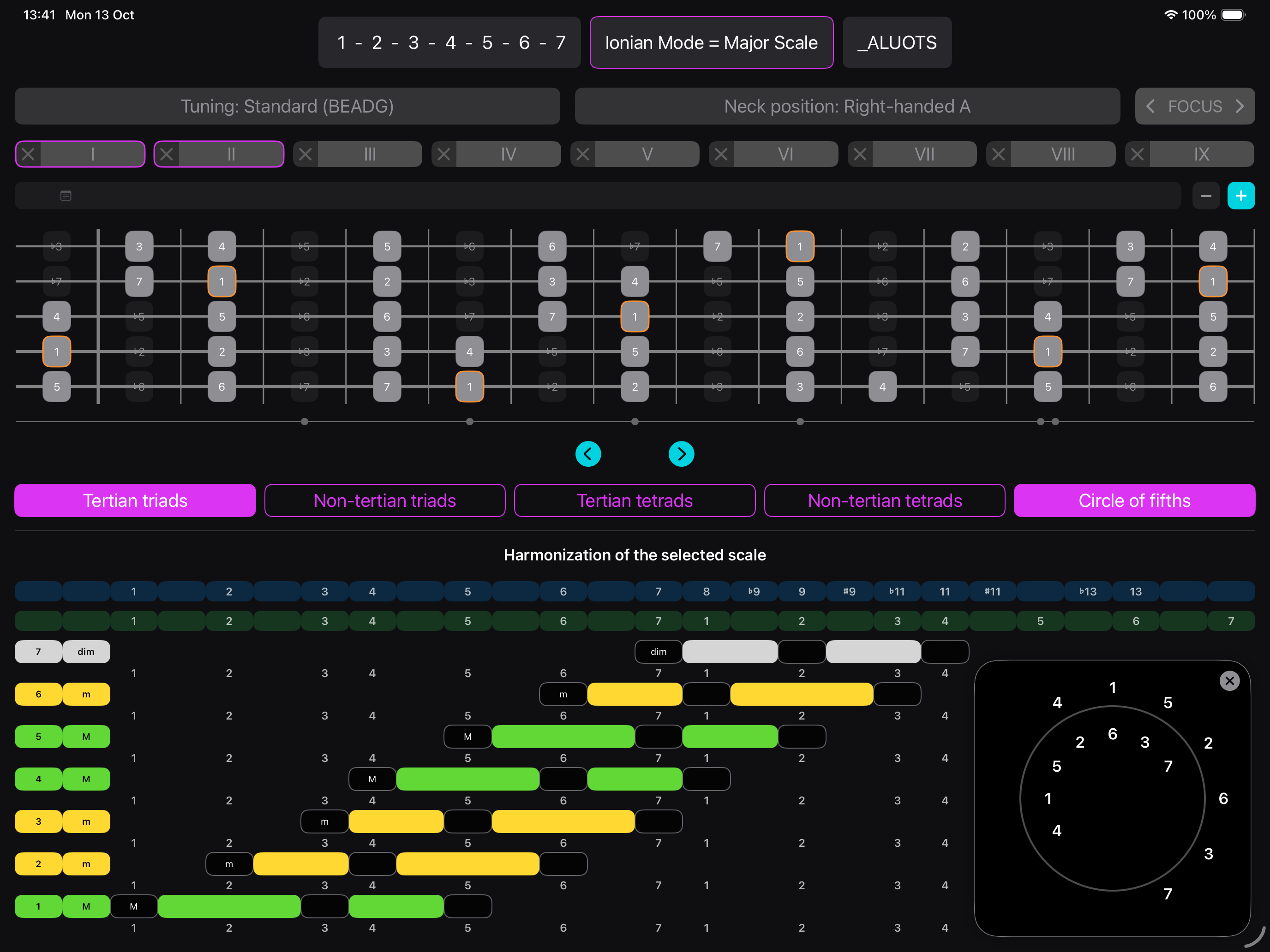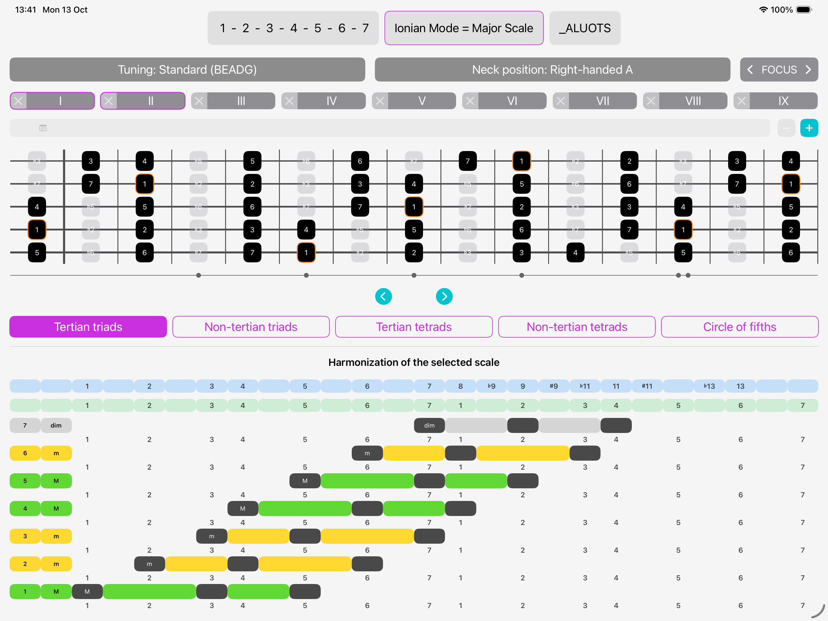The interactive app innovatively displays the triads and tetrads for any musical scale. Perfect for studying and applying chords and harmonizations.