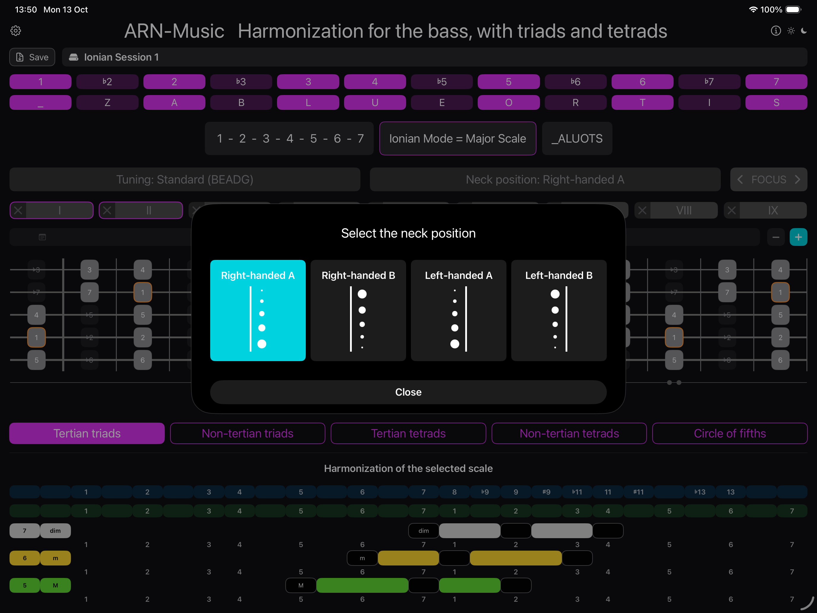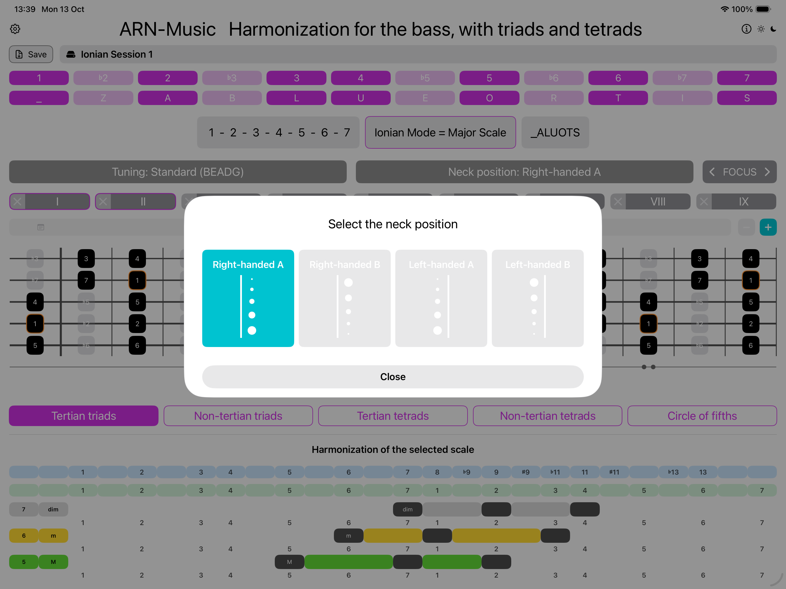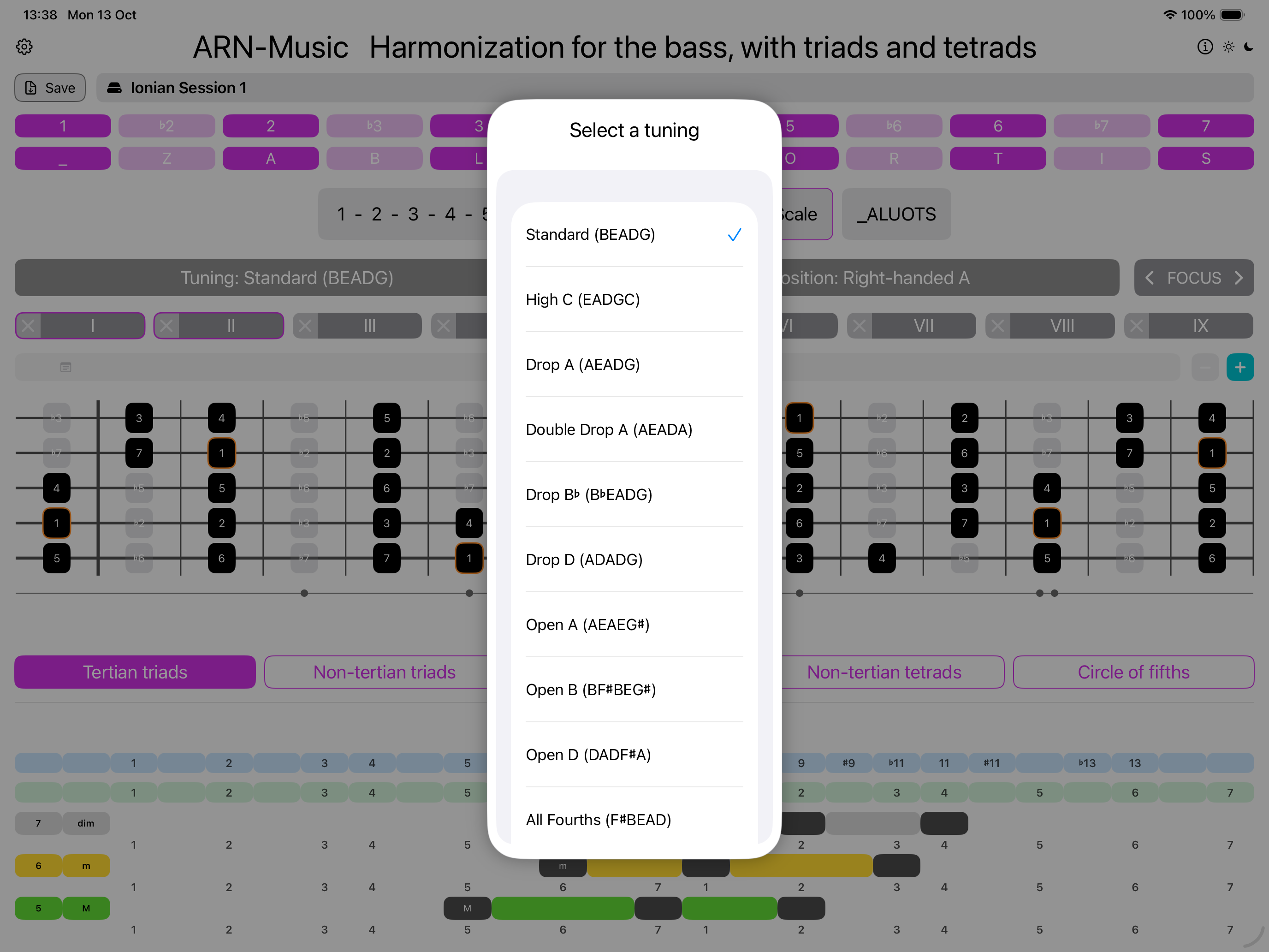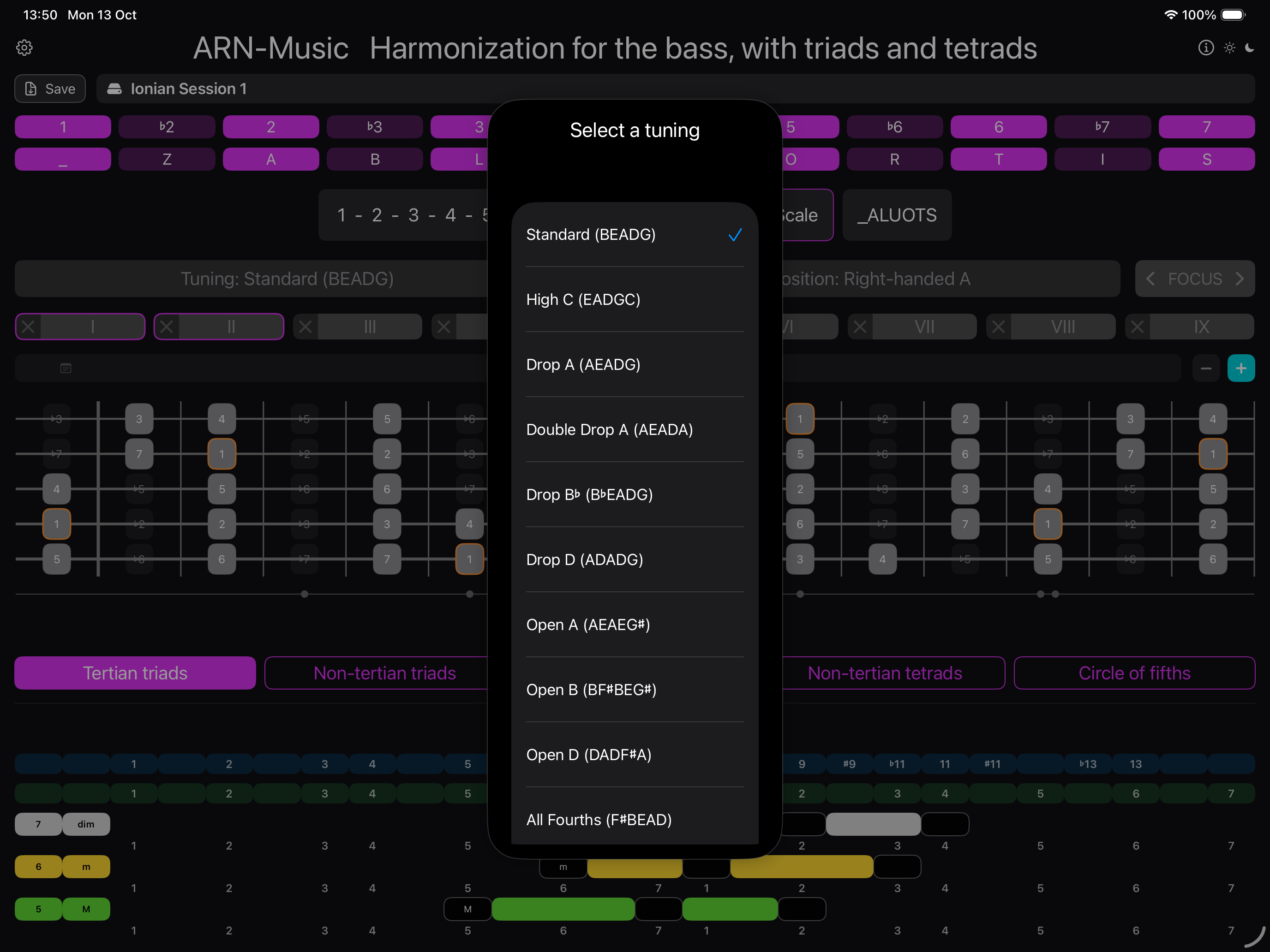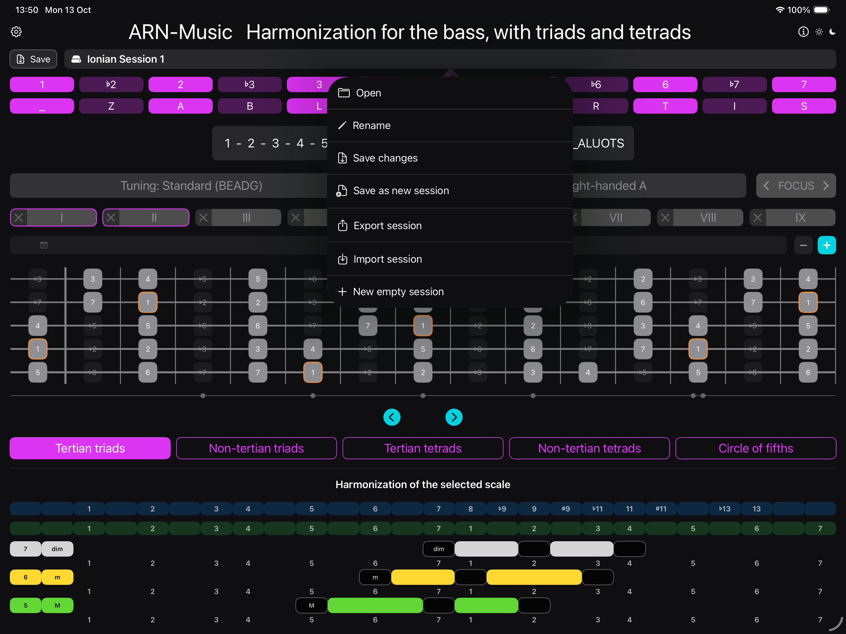 The interactive app innovatively displays the triads and tetrads for any musical scale. Perfect for studying and applying chords and harmonizations.