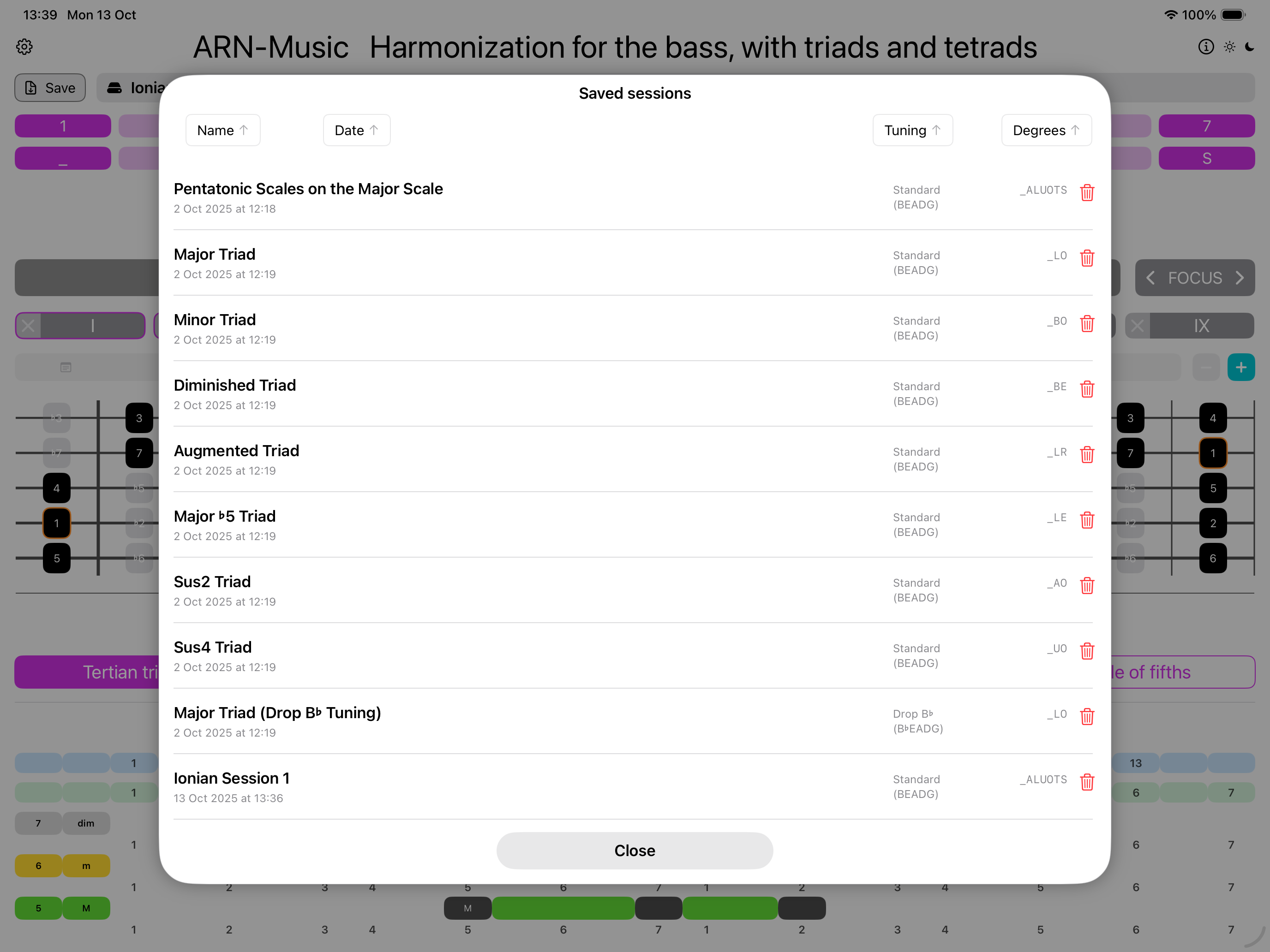 Export sessions for backup or to share with friends, students or colleagues (AirDrop ready).