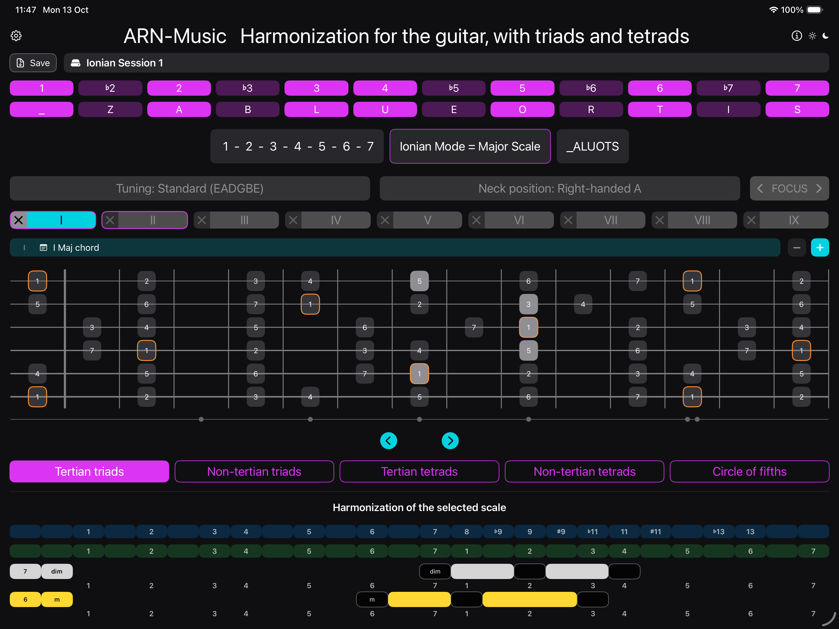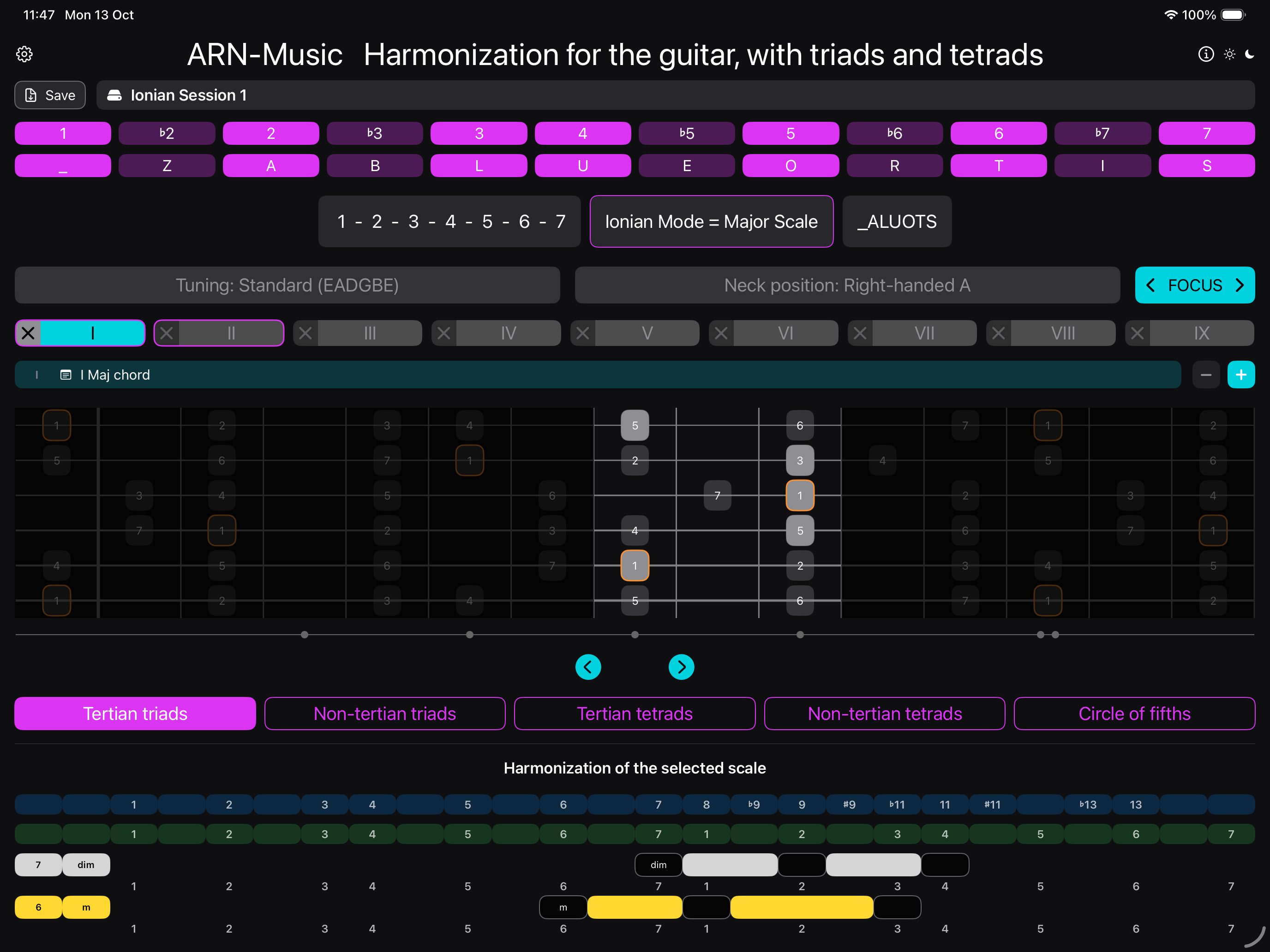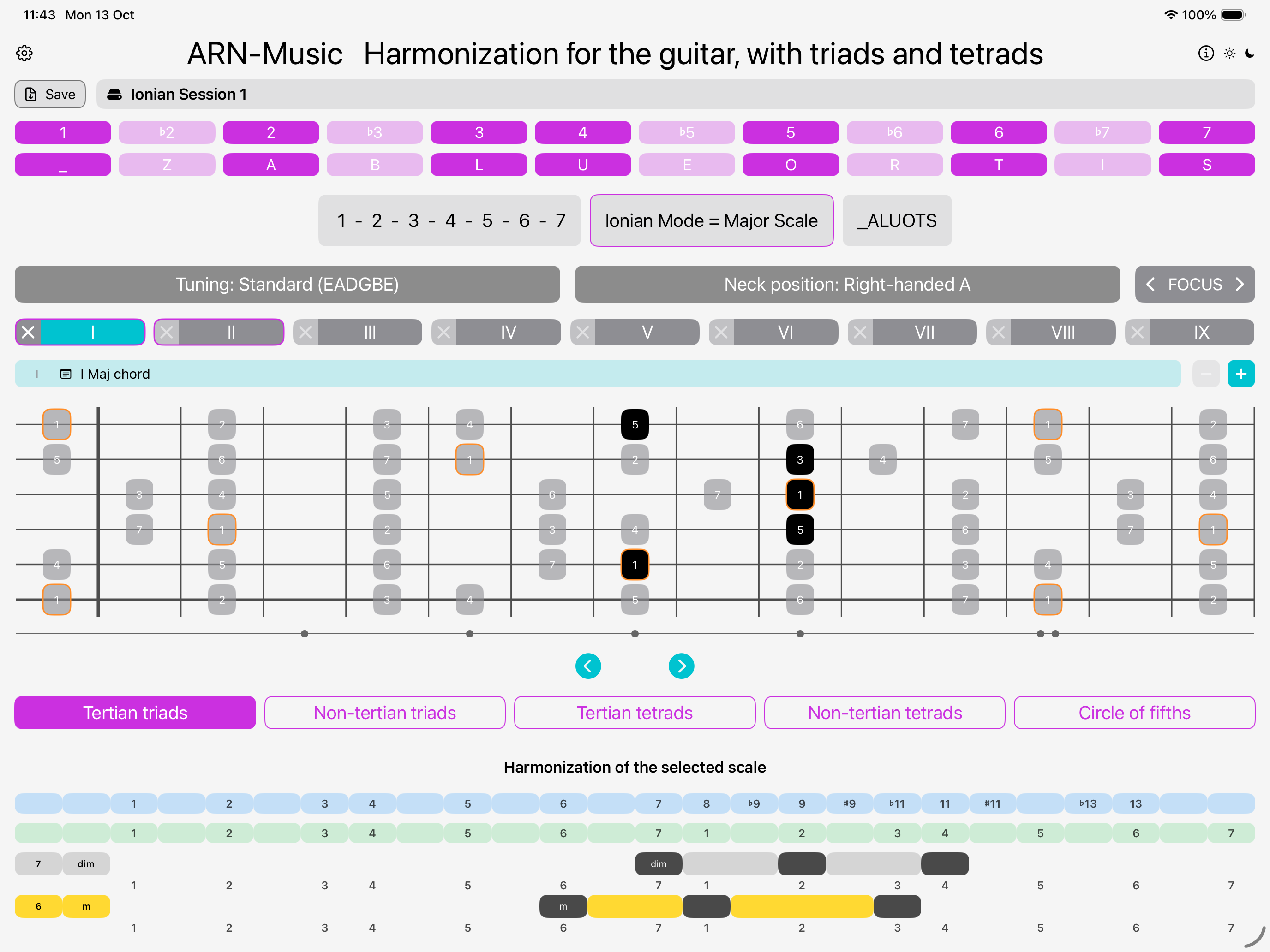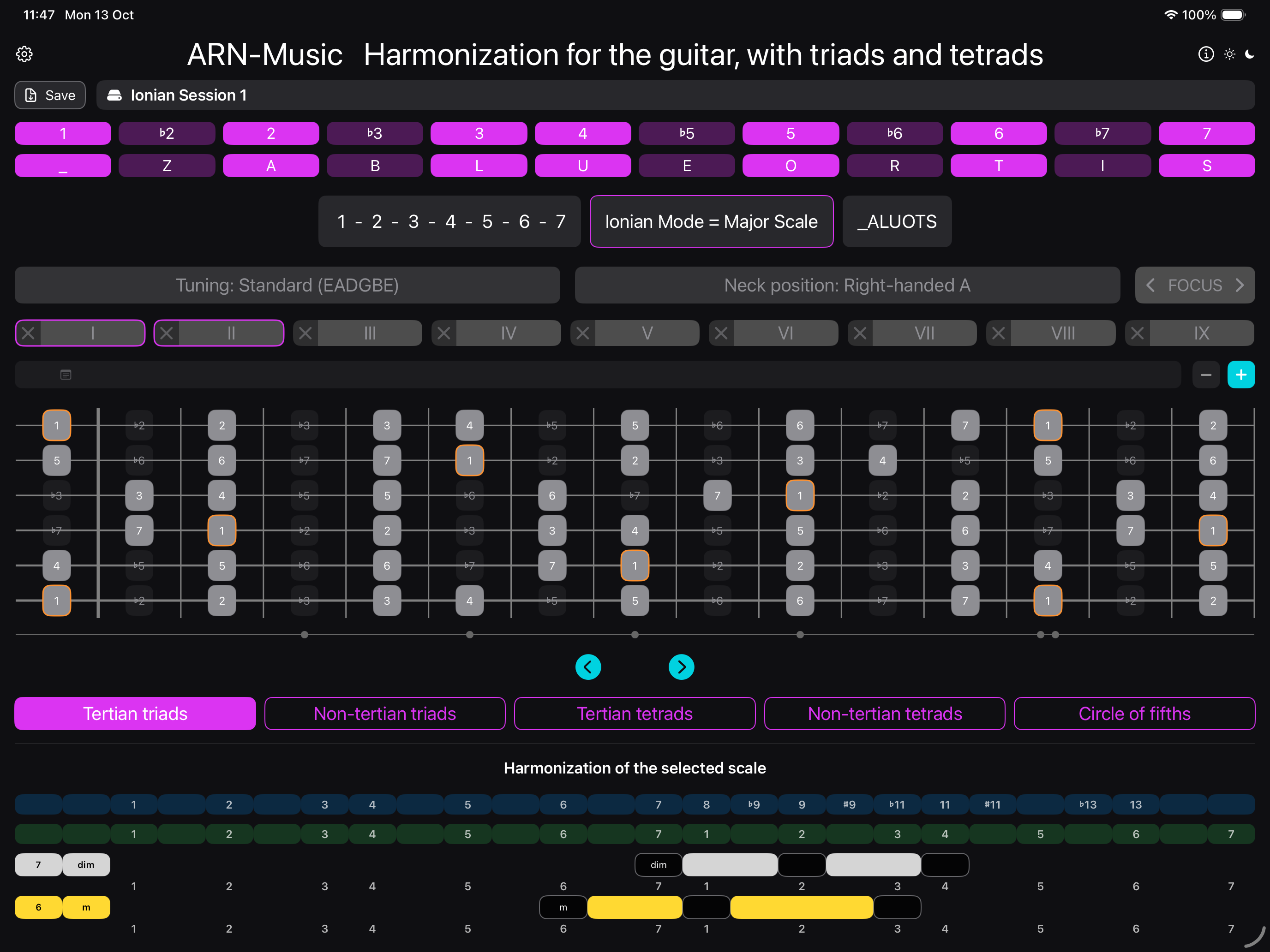 The interactive app innovatively displays the triads and tetrads for any musical scale. Perfect for studying and applying chords and harmonizations.