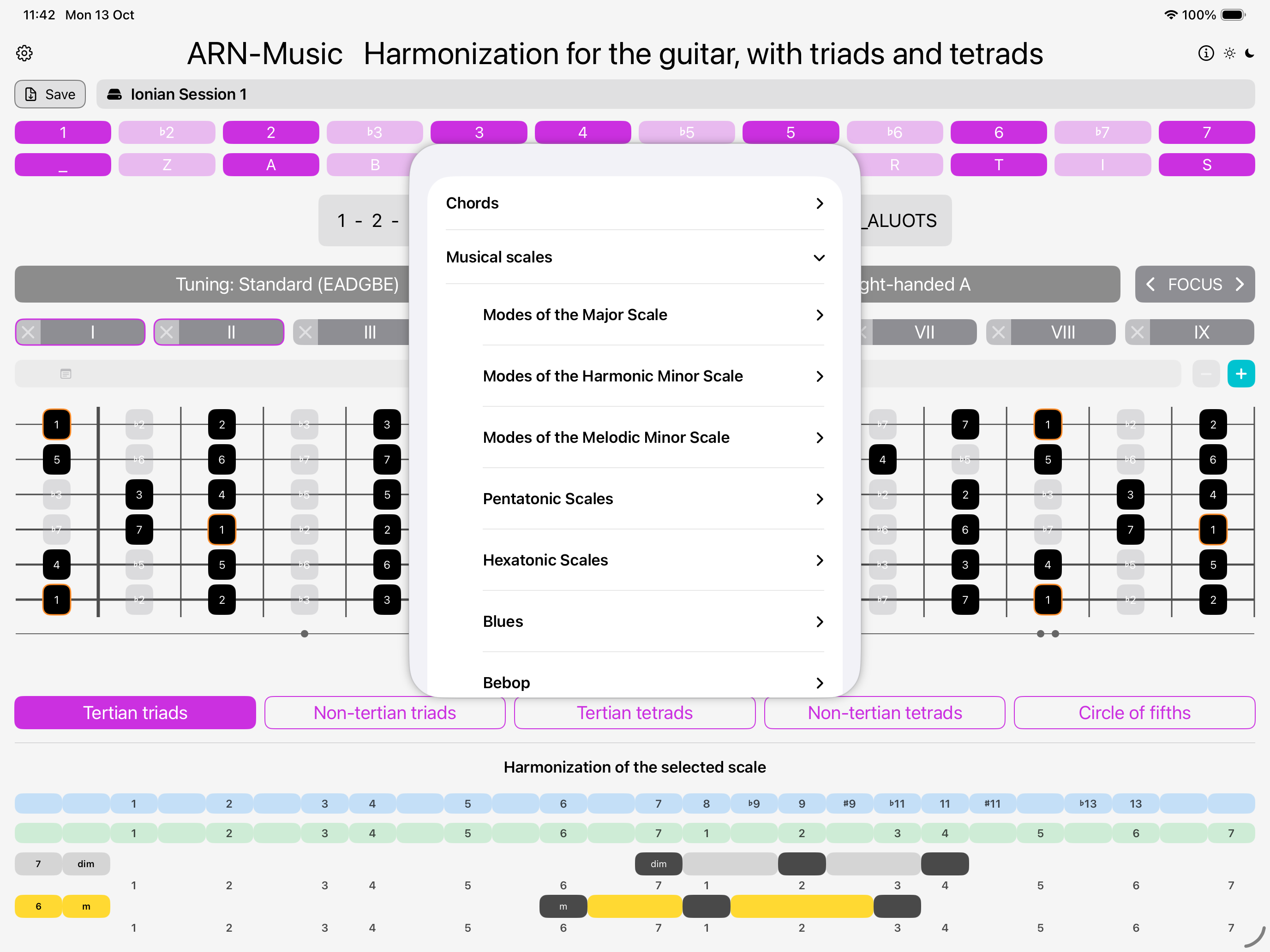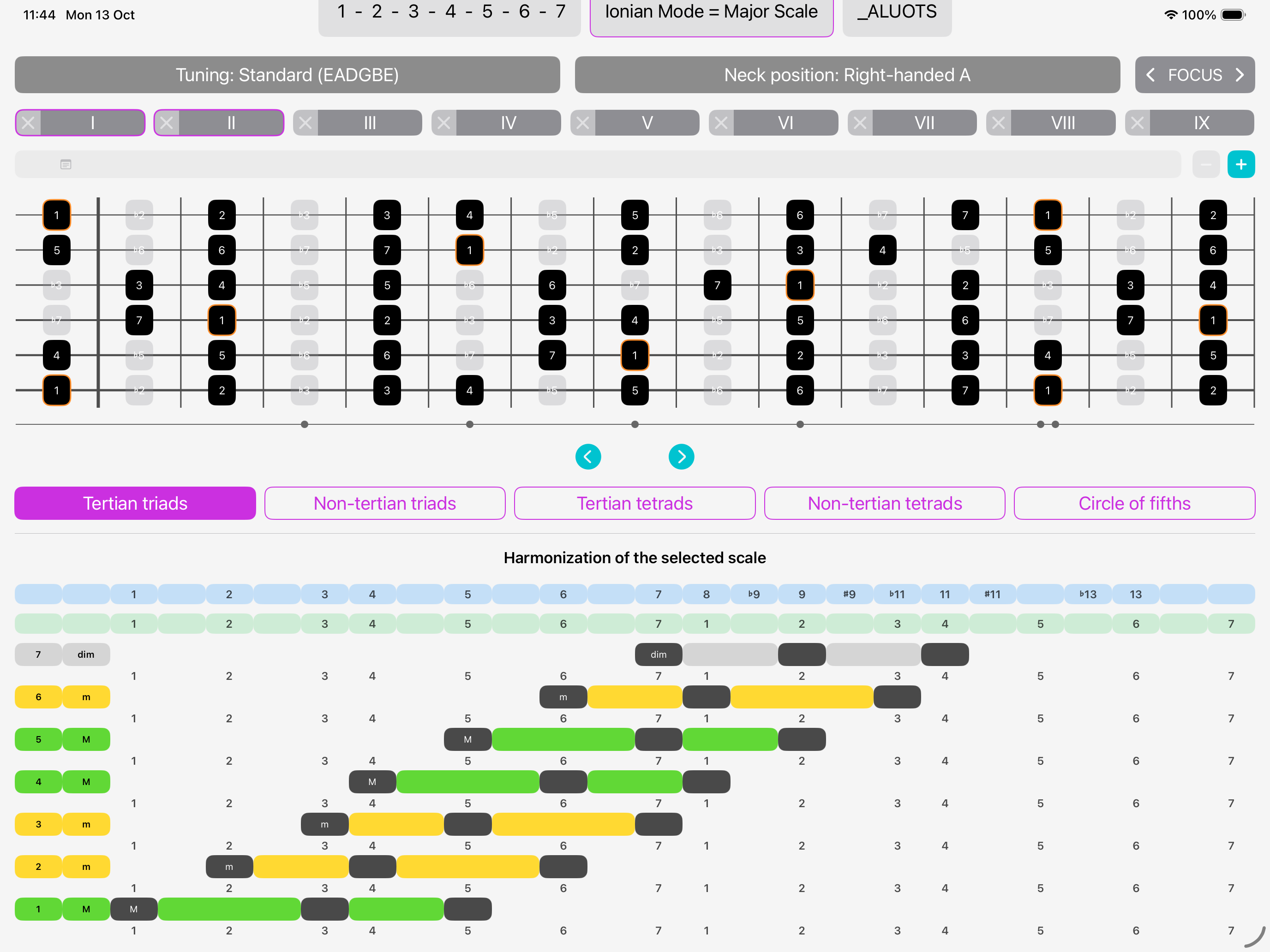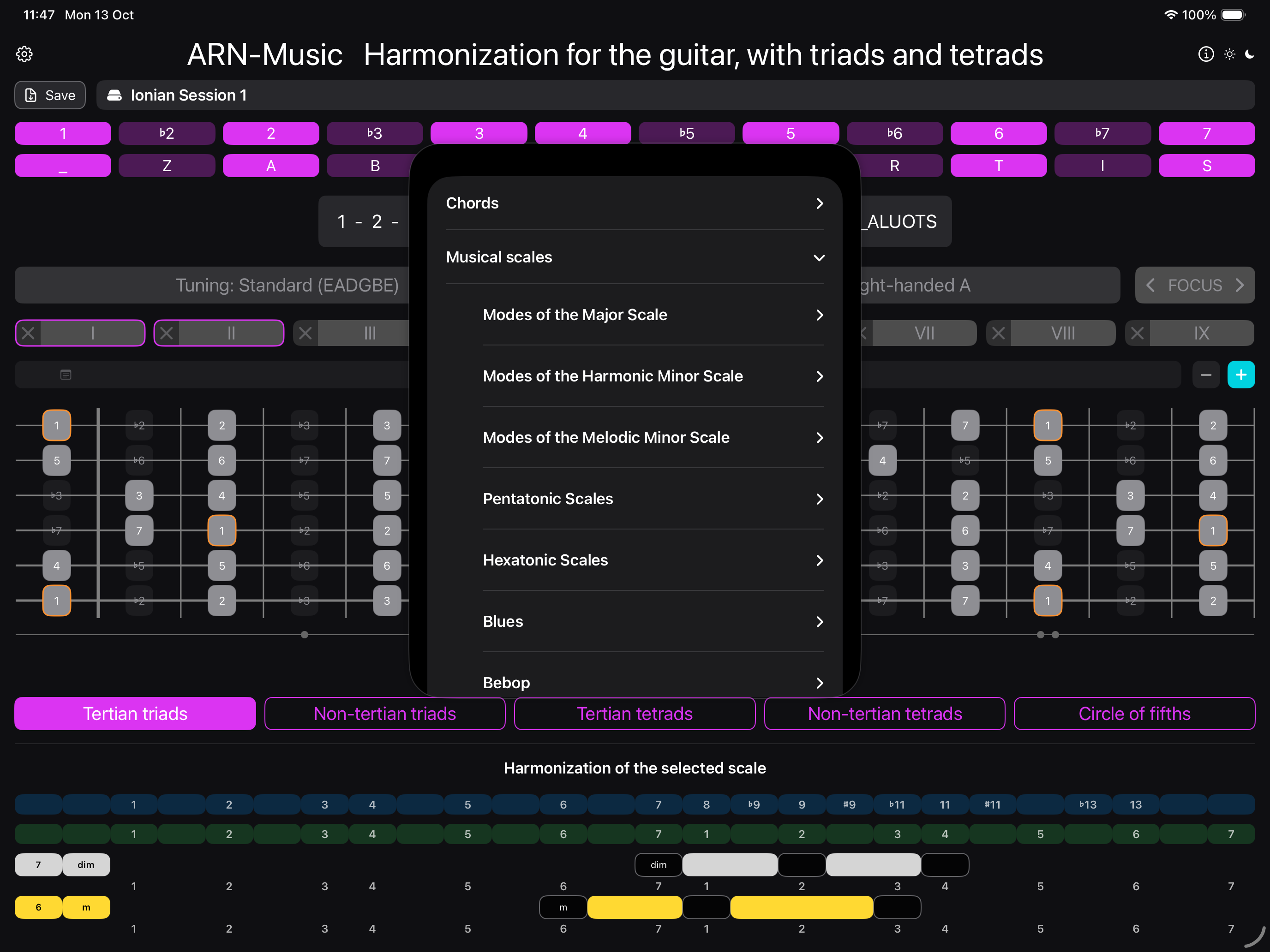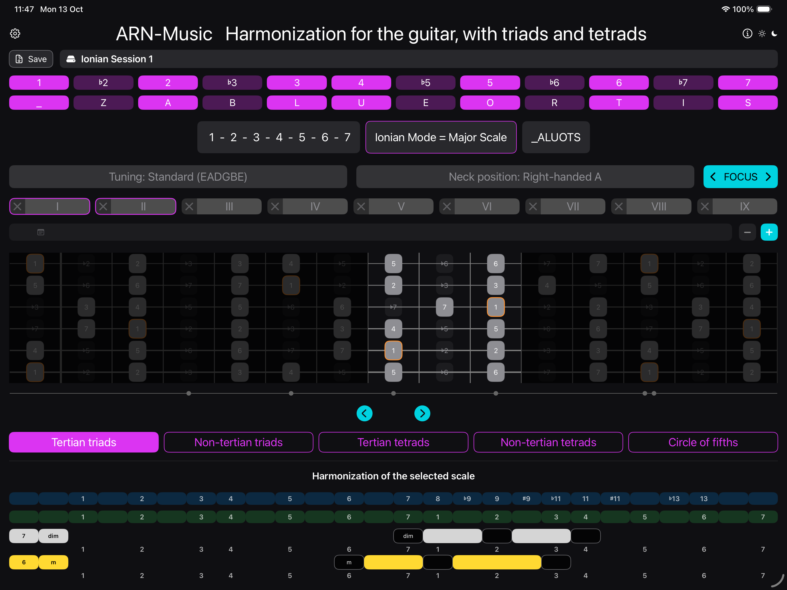 The interactive app innovatively displays the triads and tetrads for any musical scale. Perfect for studying and applying chords and harmonizations.