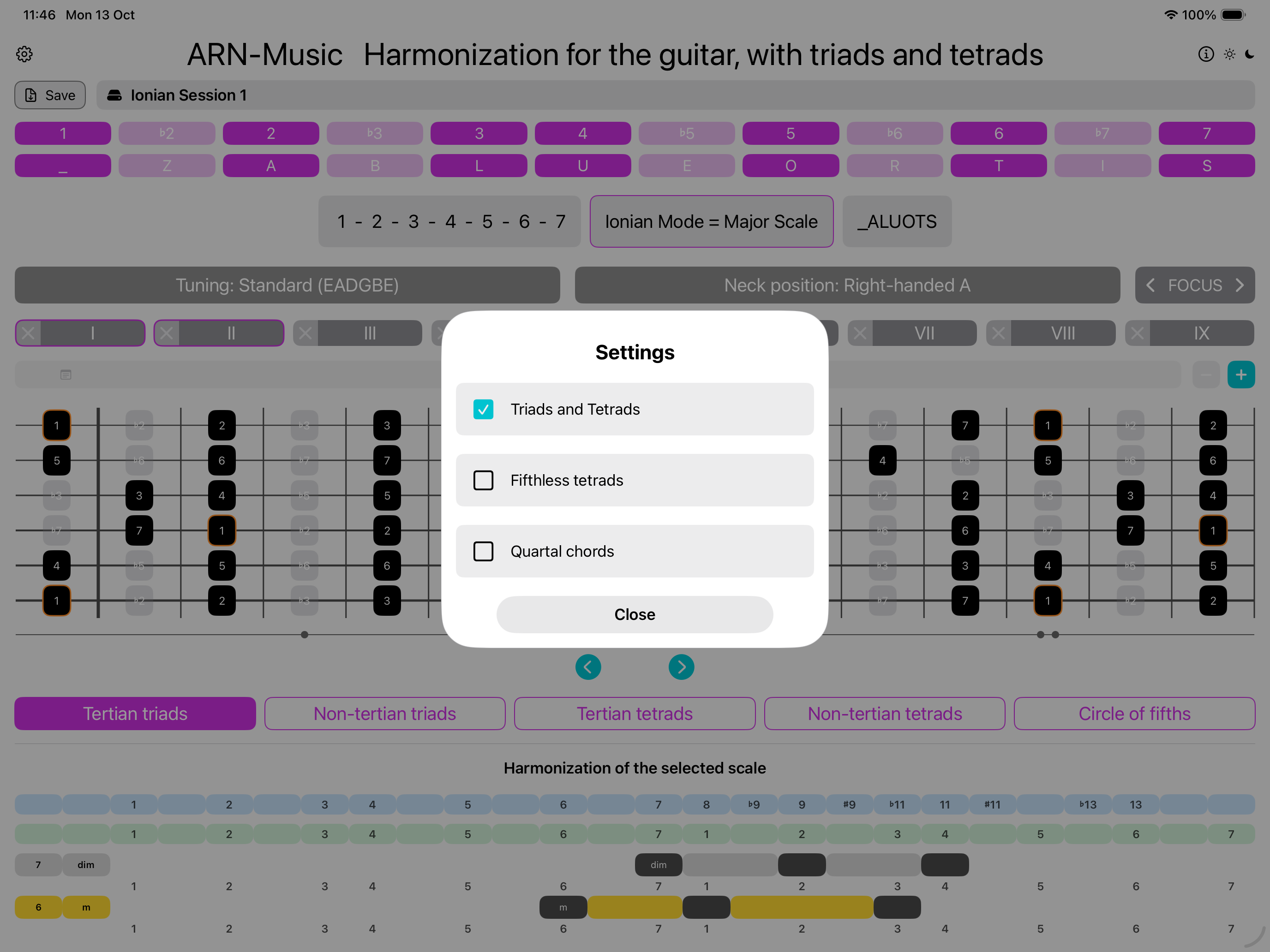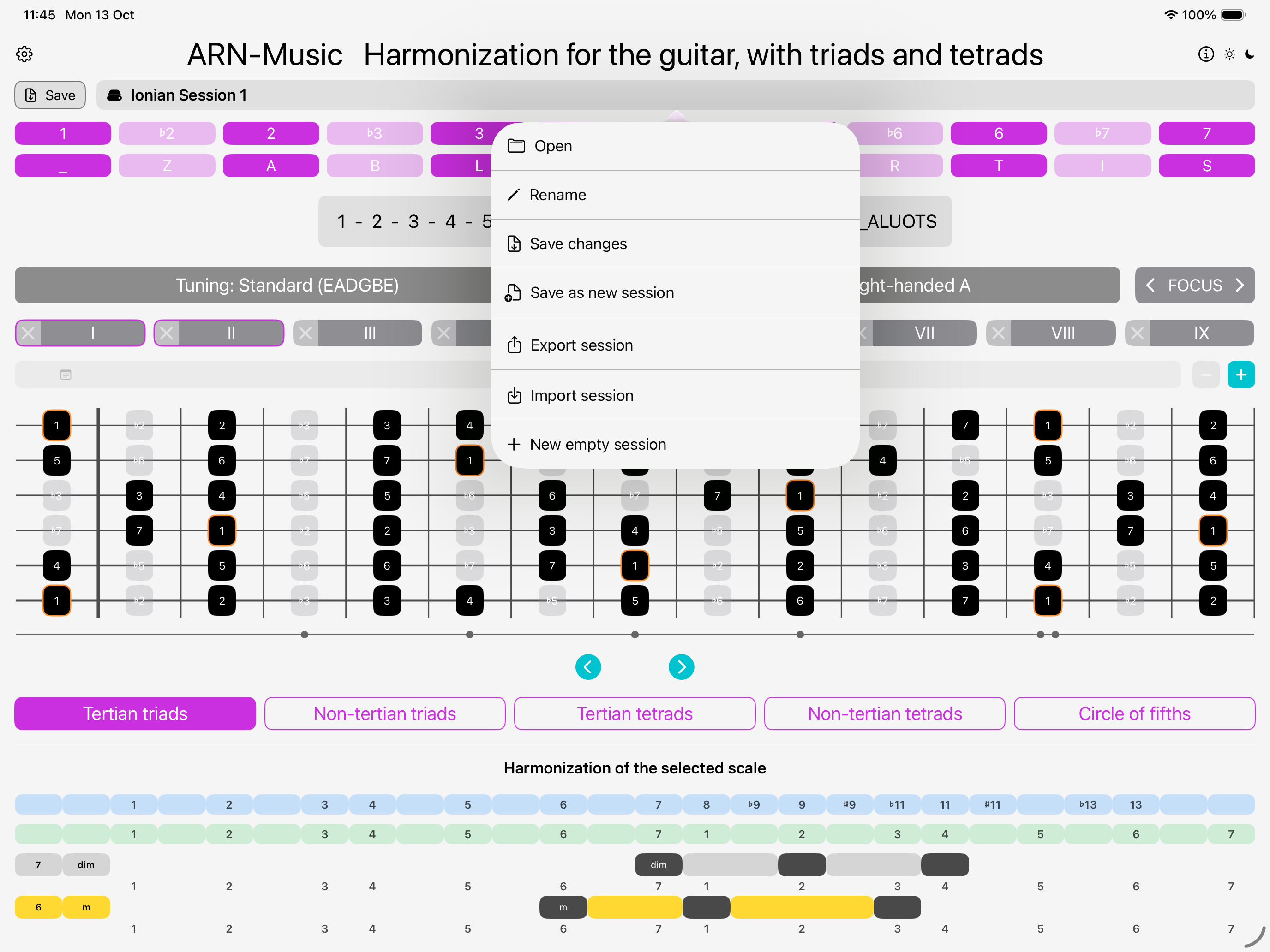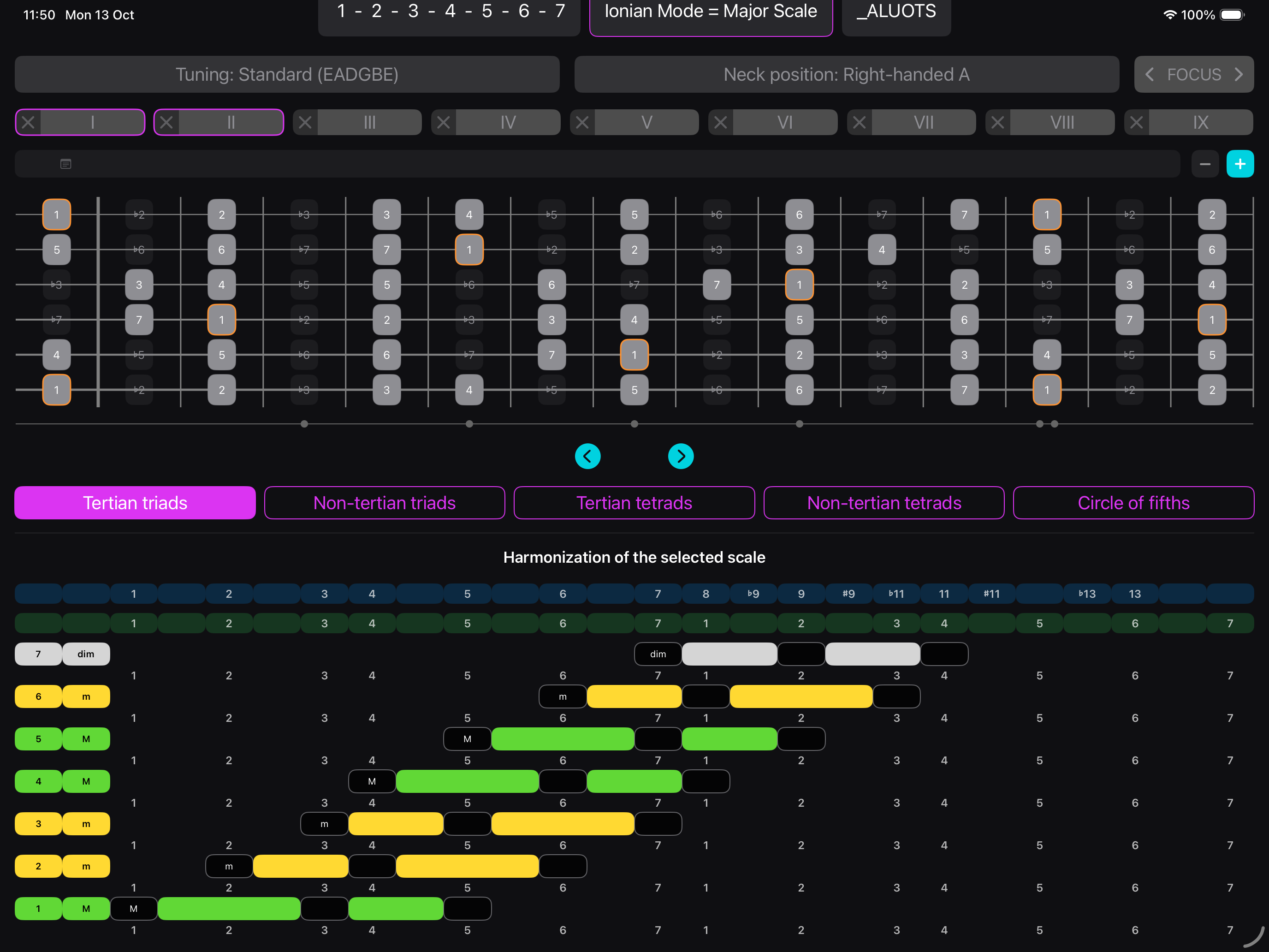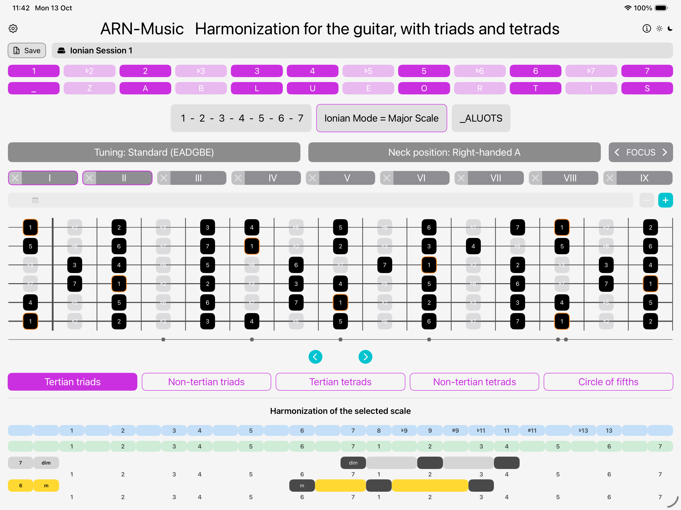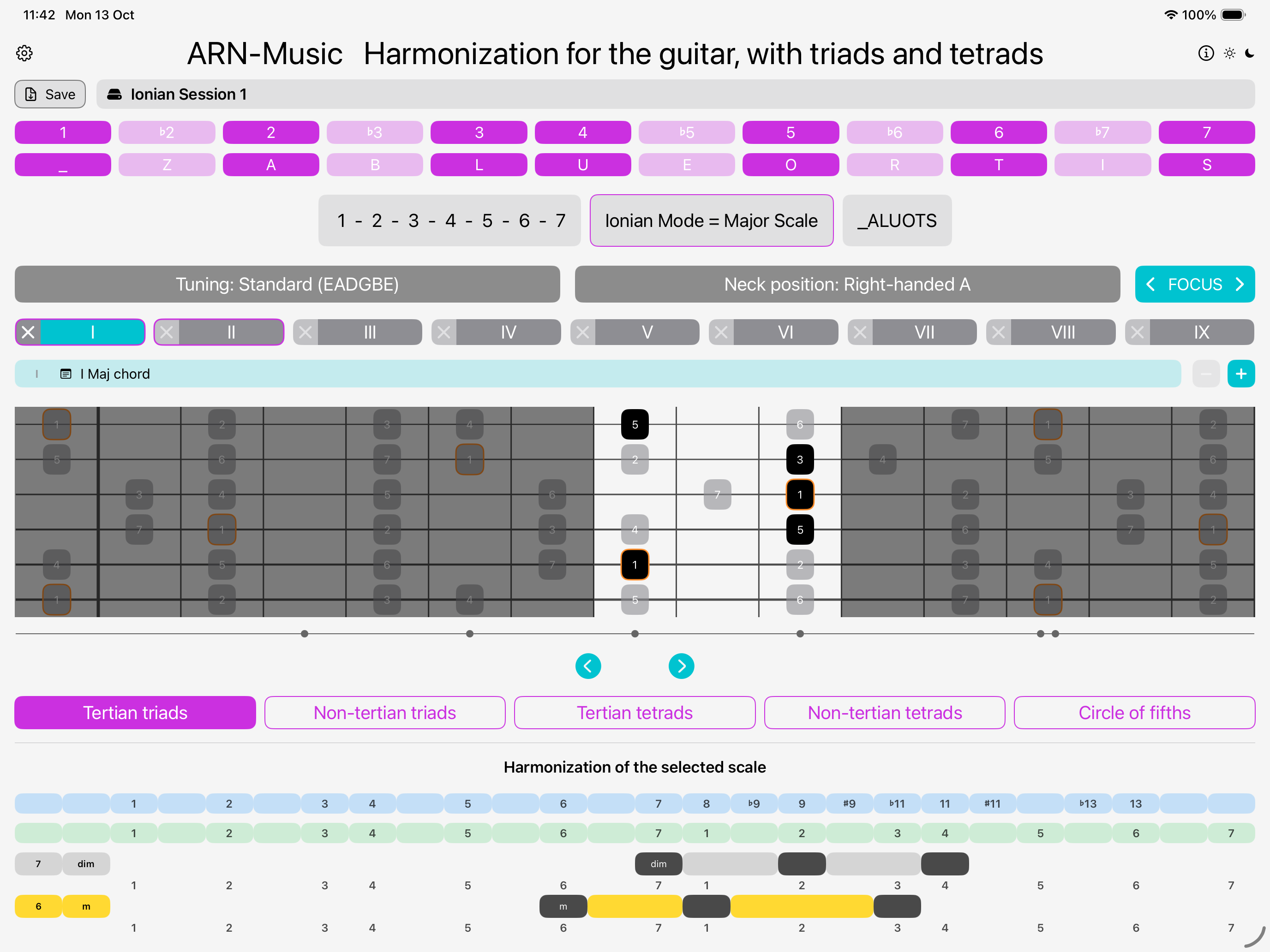 The interactive app innovatively displays the triads and tetrads for any musical scale. Perfect for studying and applying chords and harmonizations.