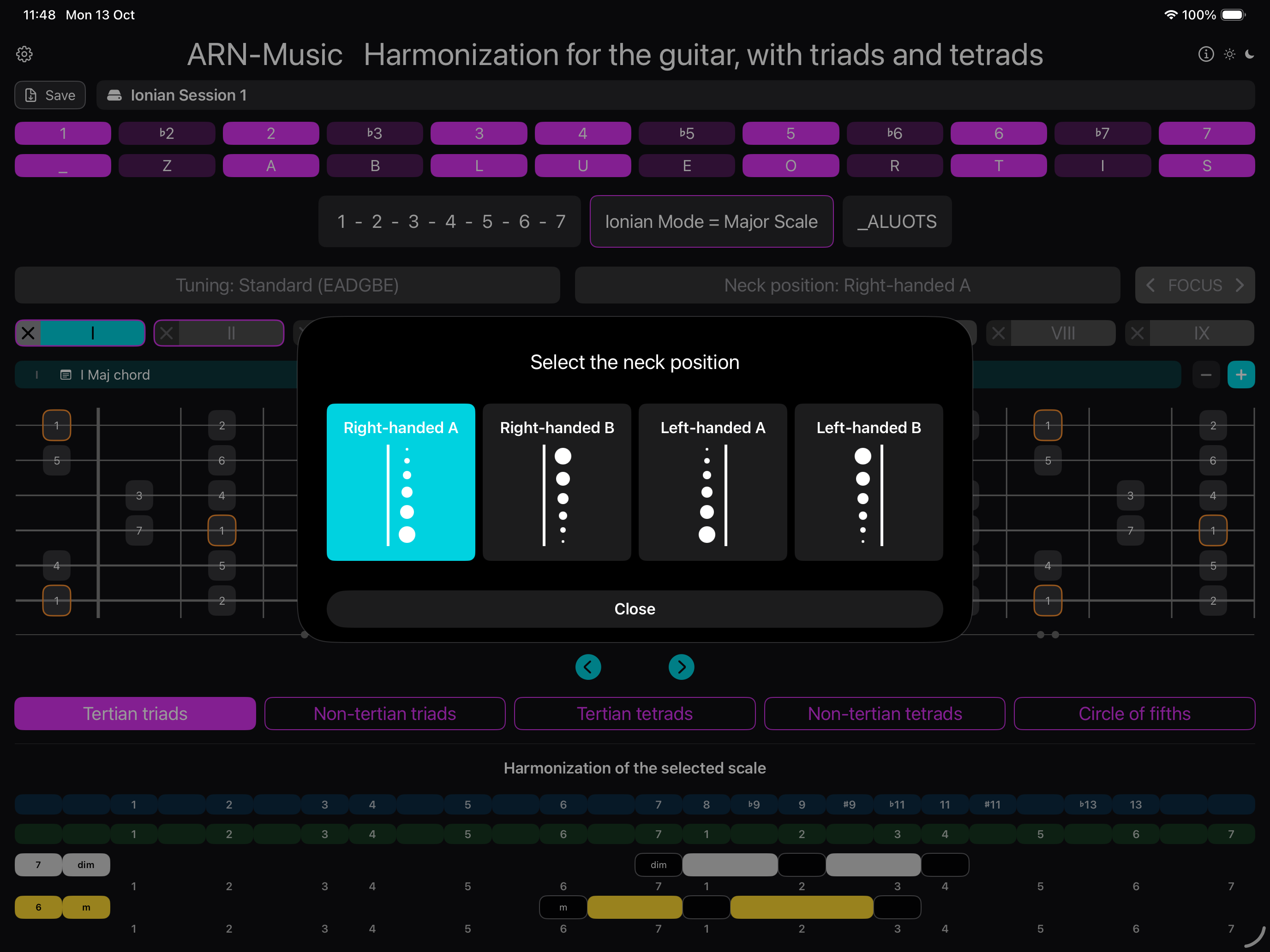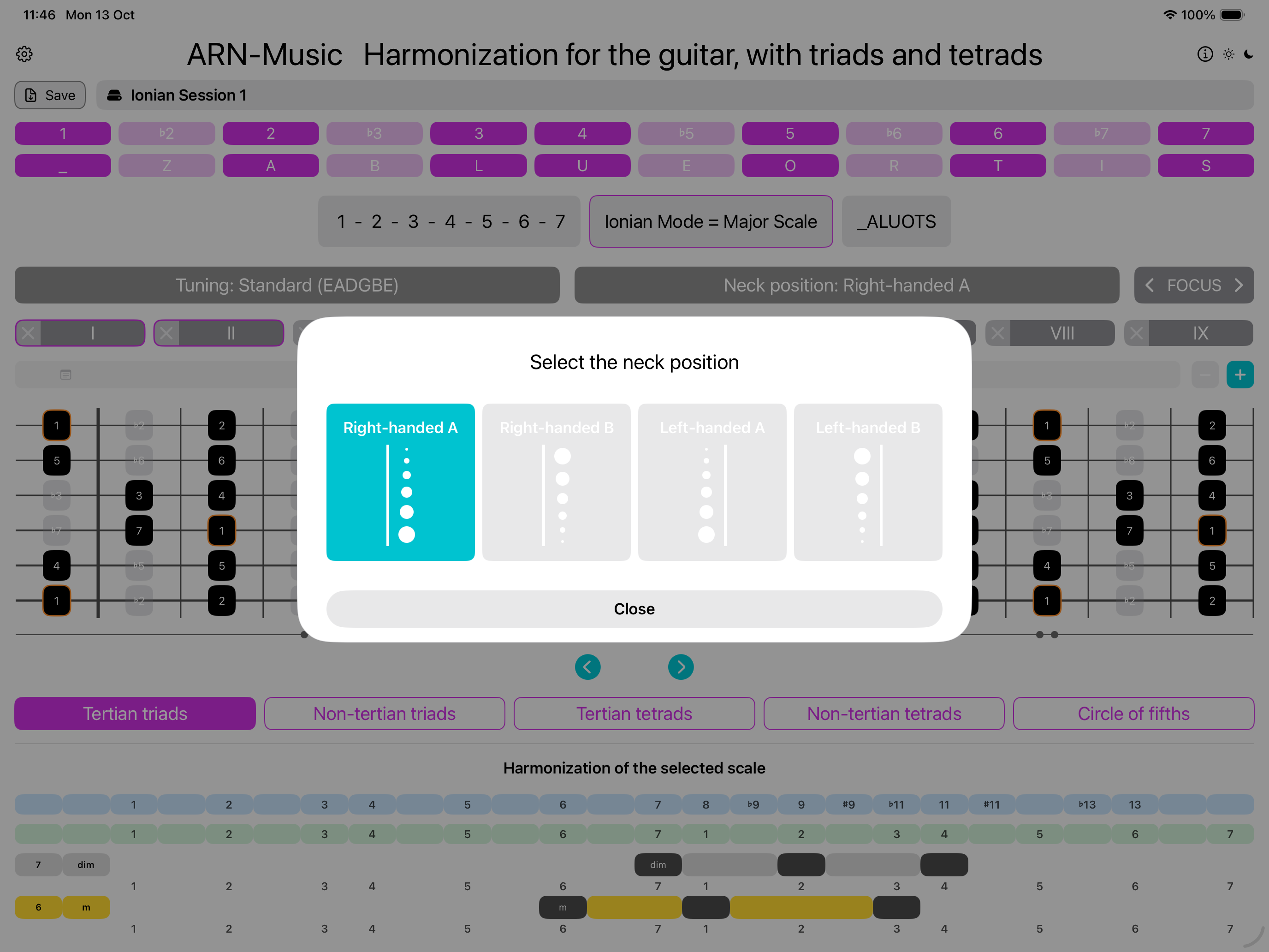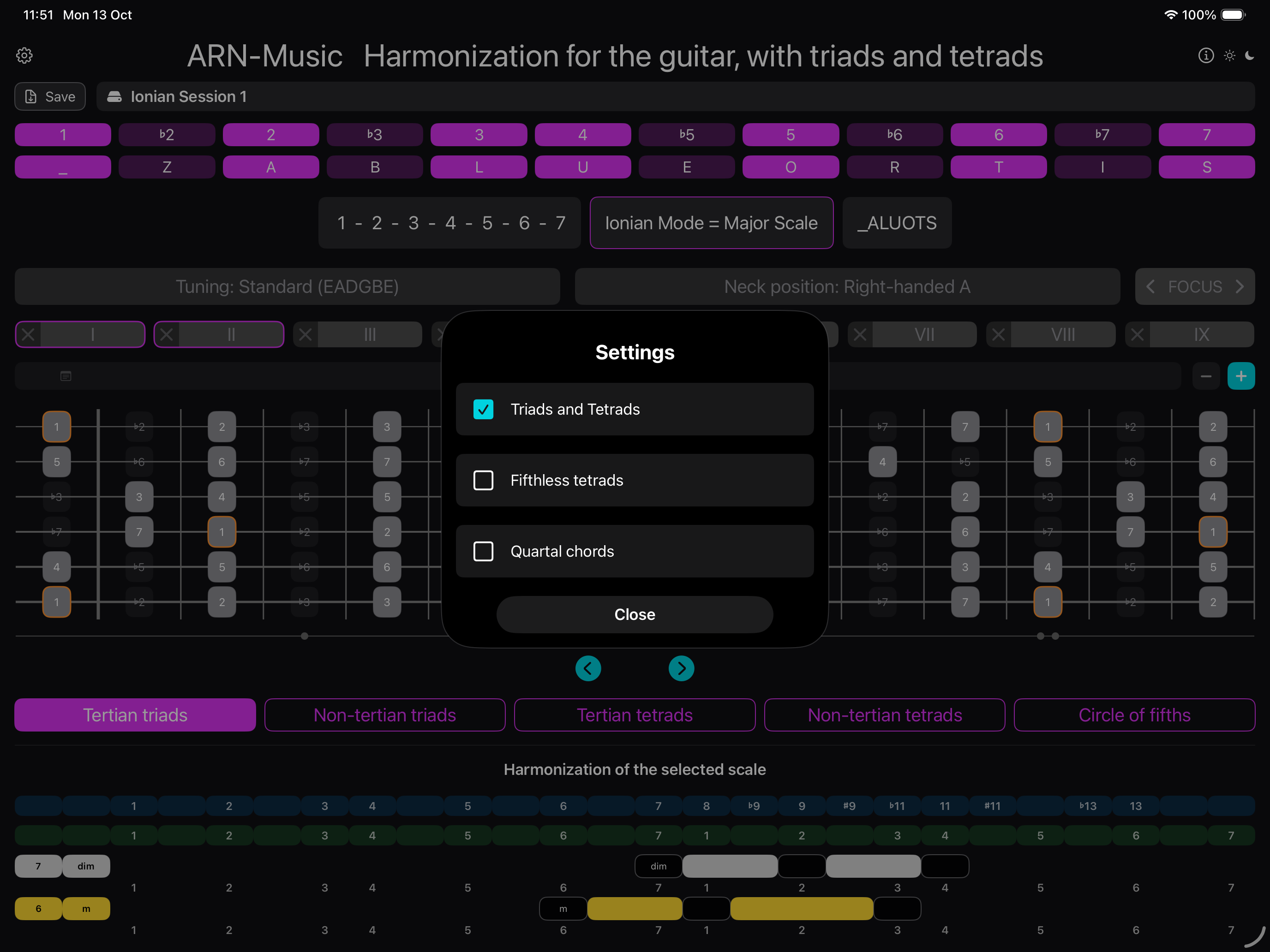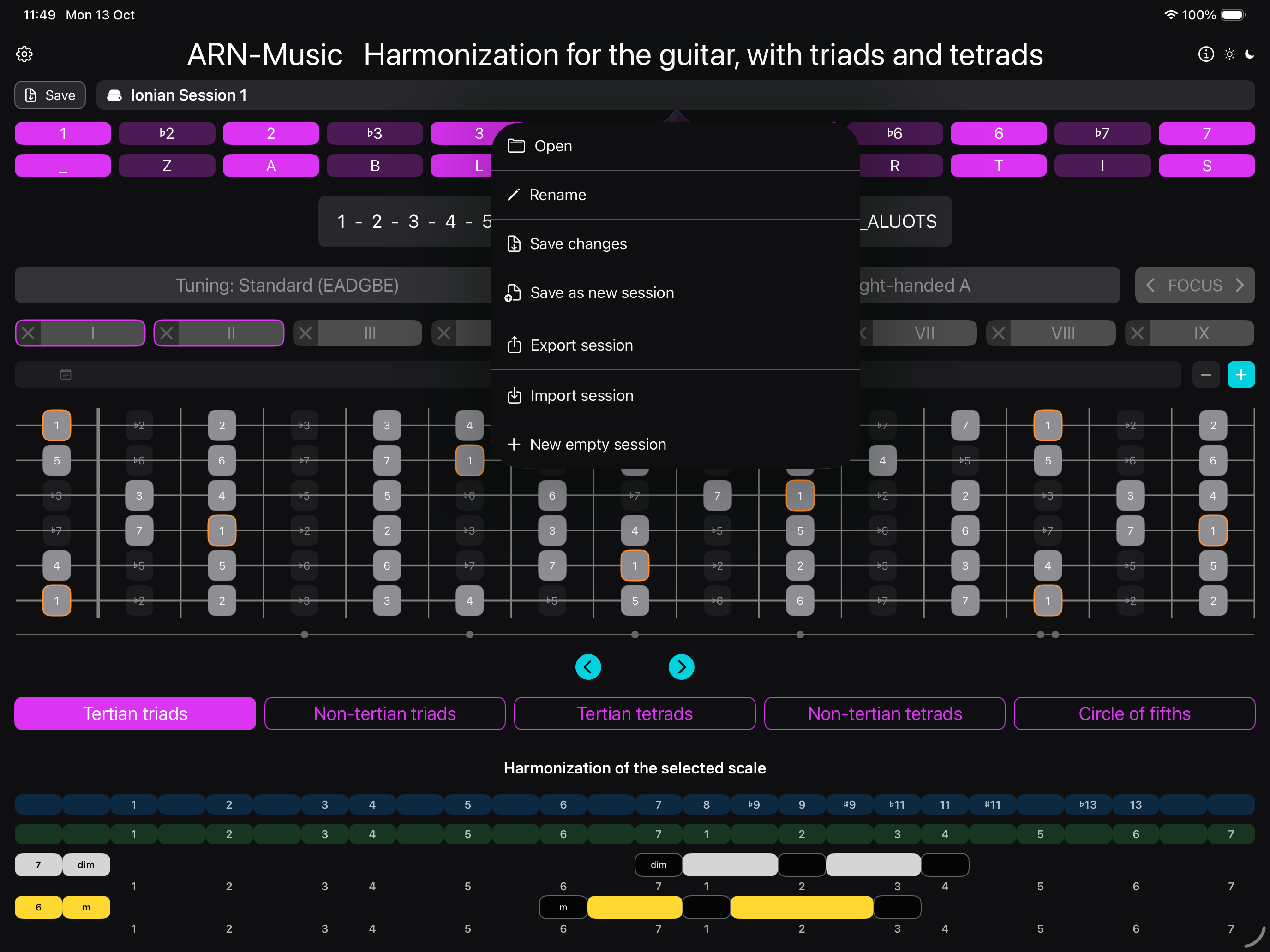 The interactive app innovatively displays the triads and tetrads for any musical scale. Perfect for studying and applying chords and harmonizations.