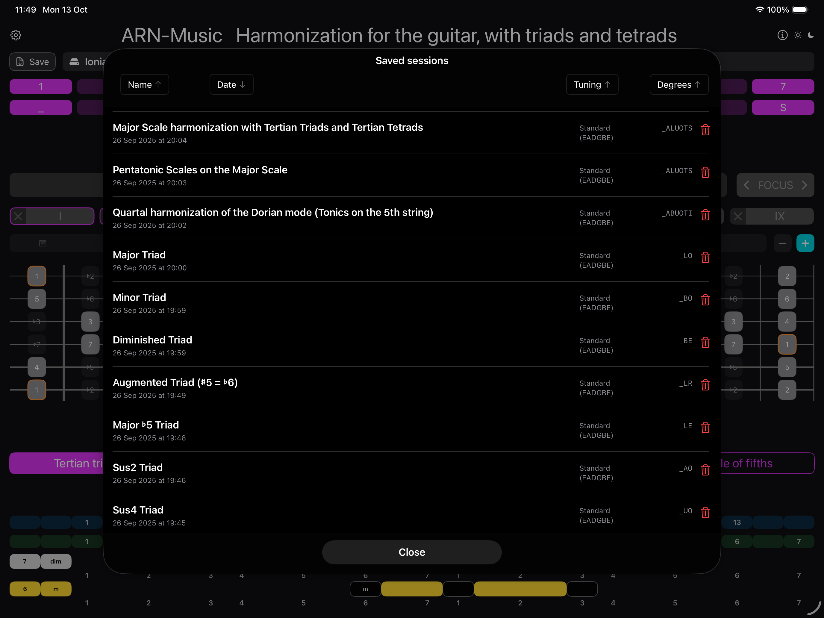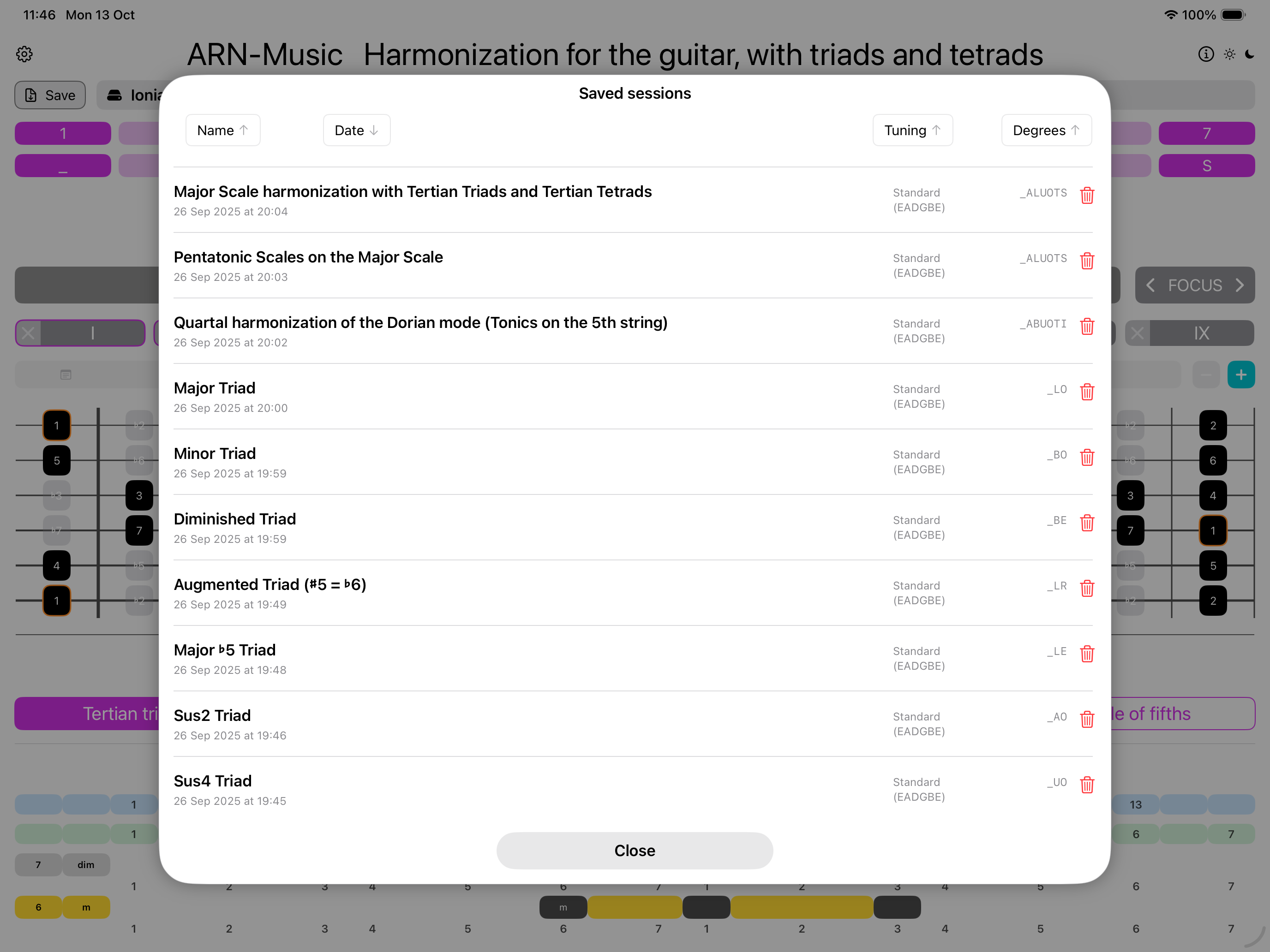 Export sessions for backup or to share with friends, students or colleagues (AirDrop ready).