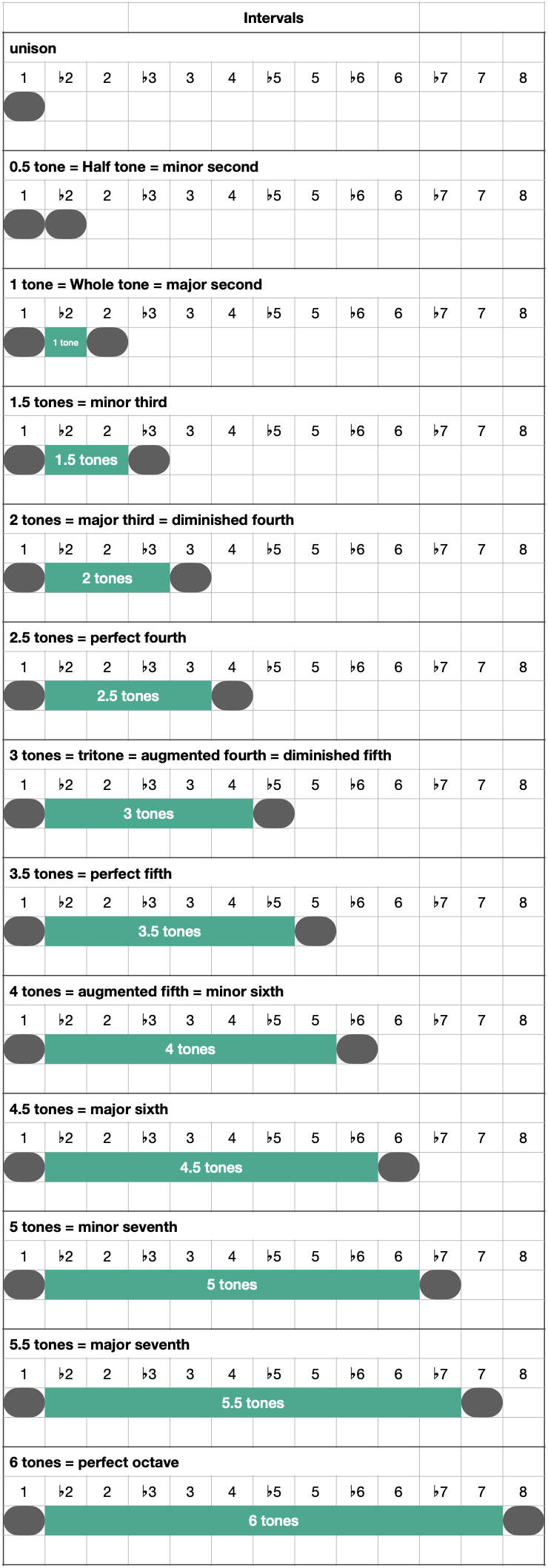 1-W-2-W-3-H-4-W-5-W-6-W-7-H-8 ← Degrees and intervals (8 is the octave of 1)